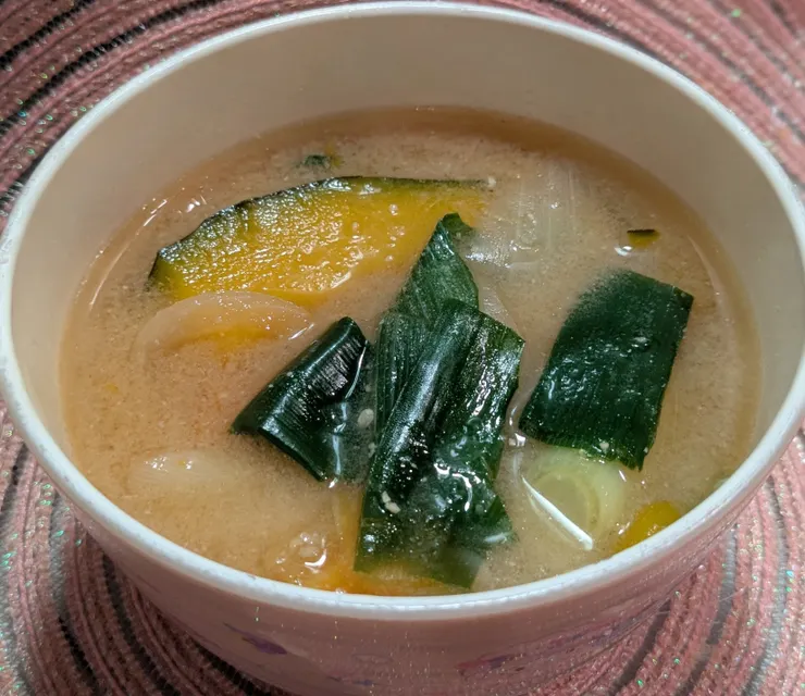 【かぼちゃとたまねぎとにんじんと九条ねぎのお味噌汁】