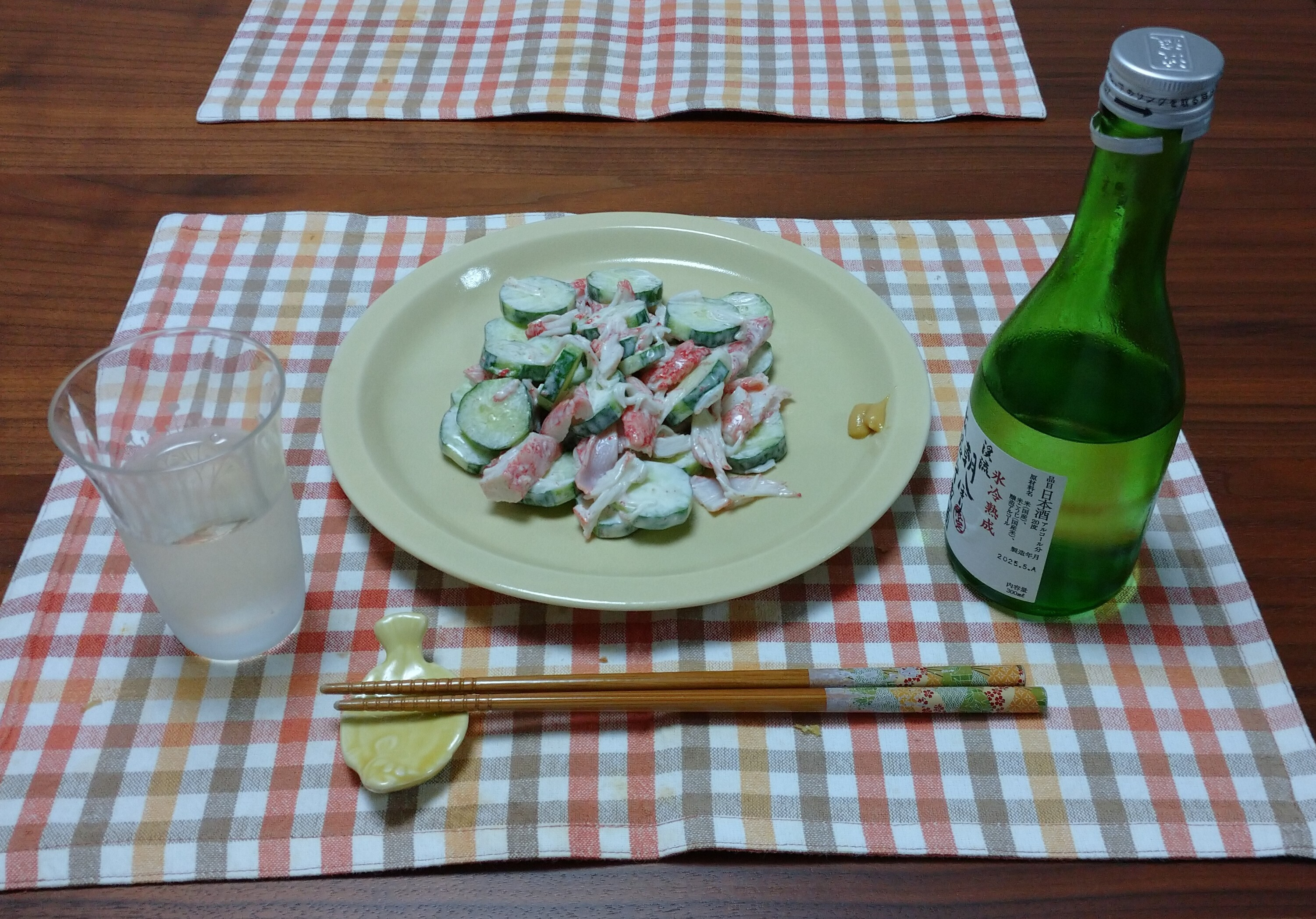 投稿を表示カニかま🦀とキュウリ🥒のサラダに一杯、お酒が進みますね~