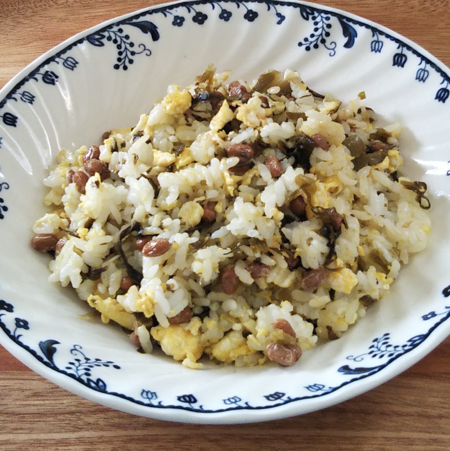 高菜チャーハンにしようか?納豆チャーハンにしようか?迷って…大好きな物を両方入れて作り、美味しかったです😋