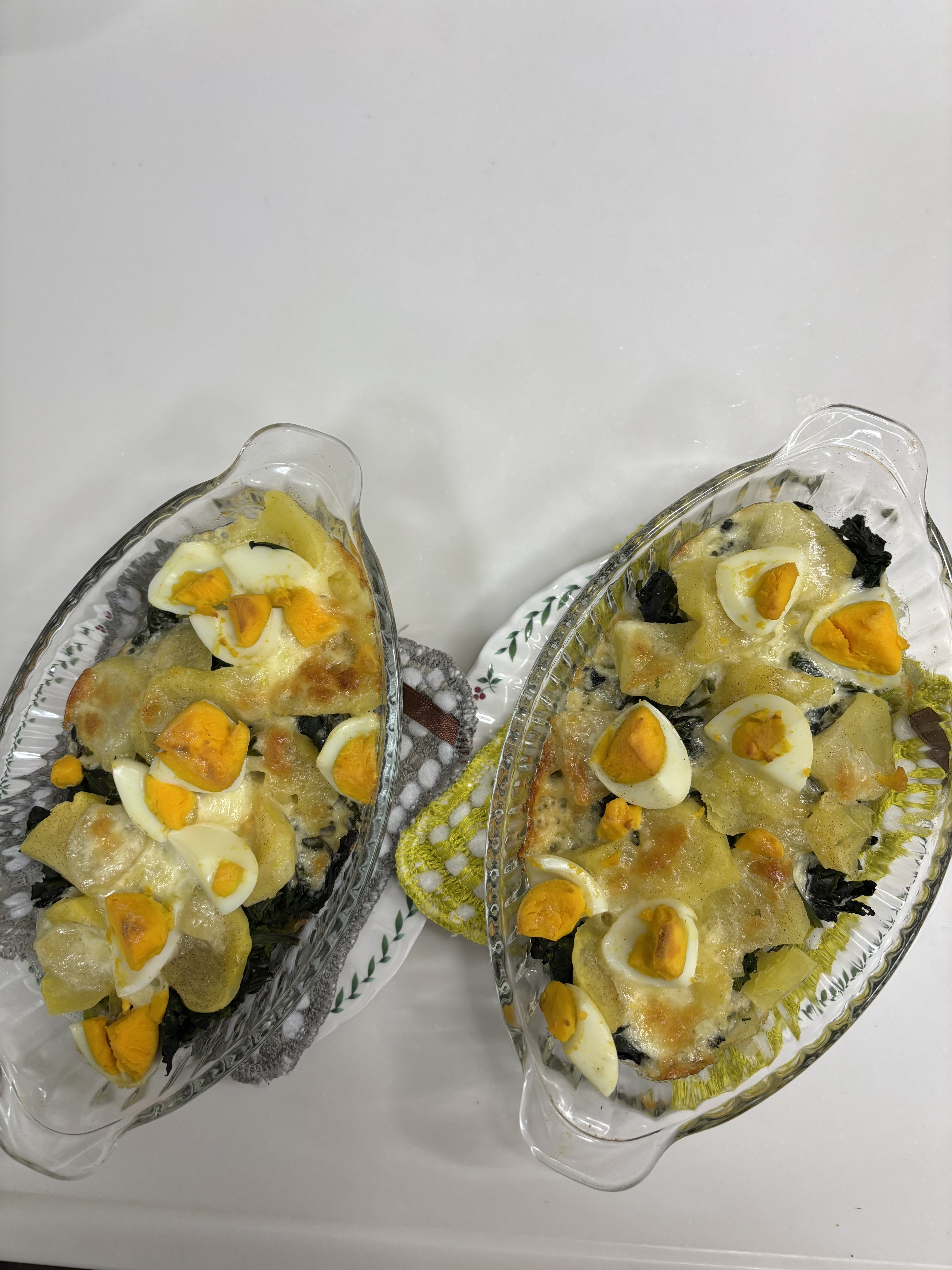 ほうれん草とゆで卵のマヨグラタンを作りました。