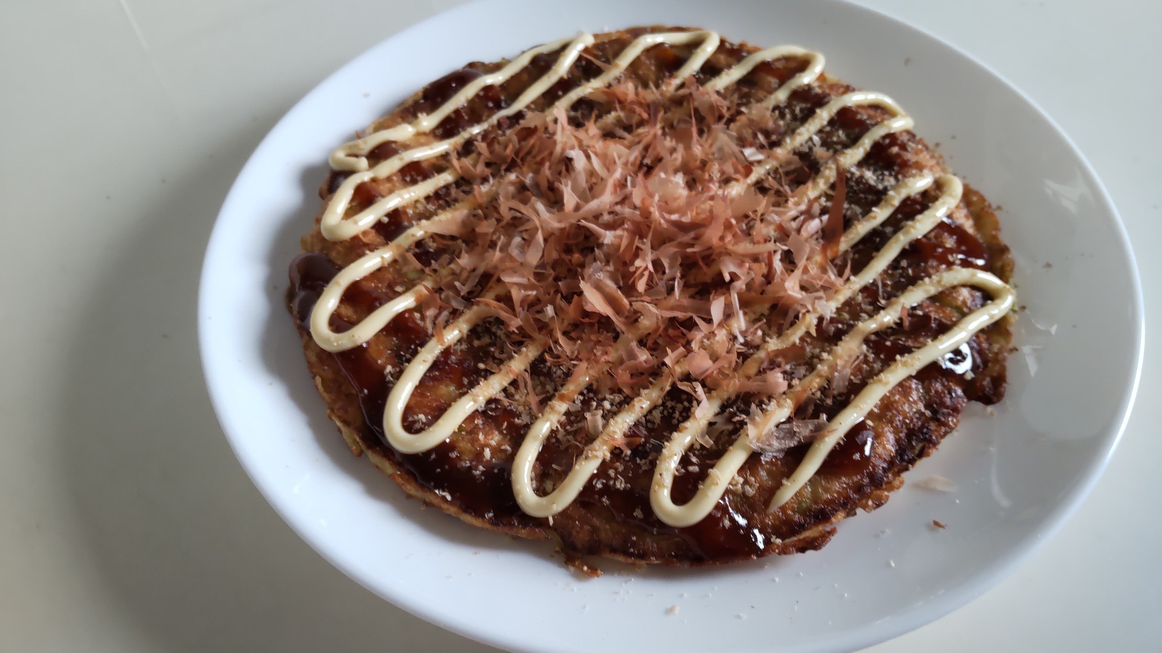 投稿を表示マヨネーズたっぷりで鰹節もあり、美味しそうなお好み焼きですね🍴😋