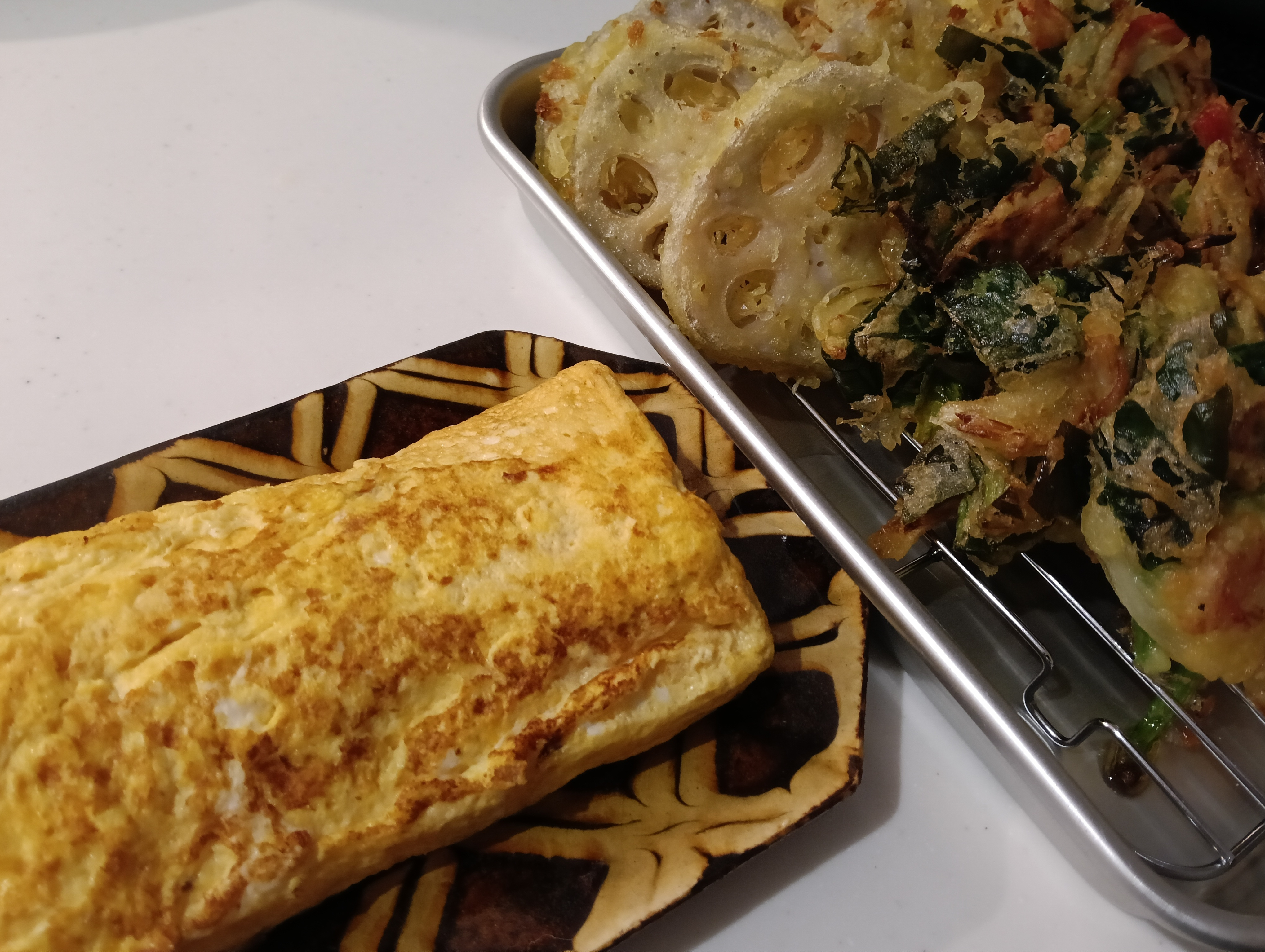 今夜はかき揚げ丼に、ふわふわだし巻き卵(⁠^⁠^⁠)どちらもマヨネーズ入りでした♡