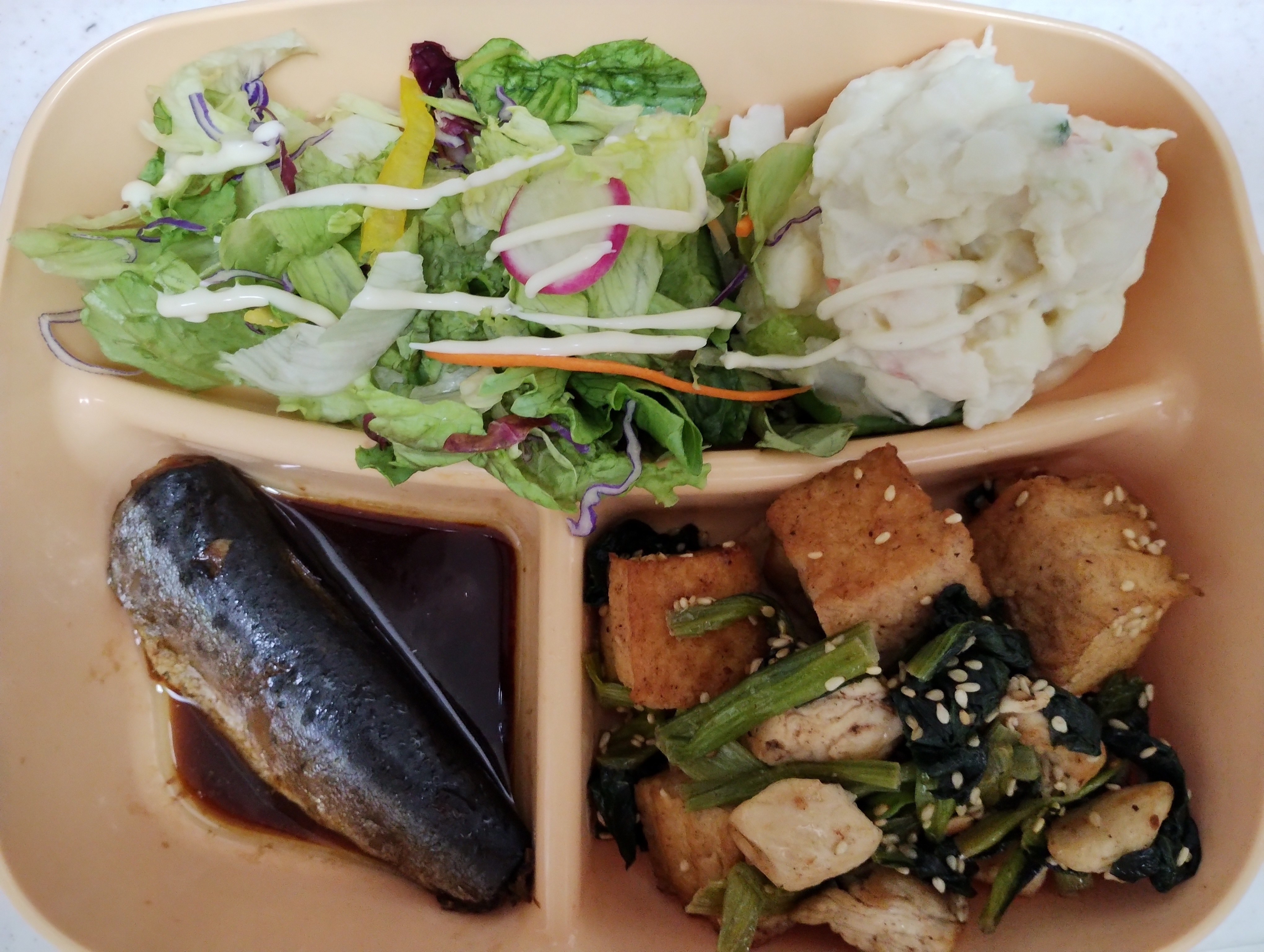 ●鶏ささみと厚揚げと小松菜をキユーピーマヨネーズと世界マヨ しびれ麻辣味で炒めました( 鶏がらスープ、料理酒)