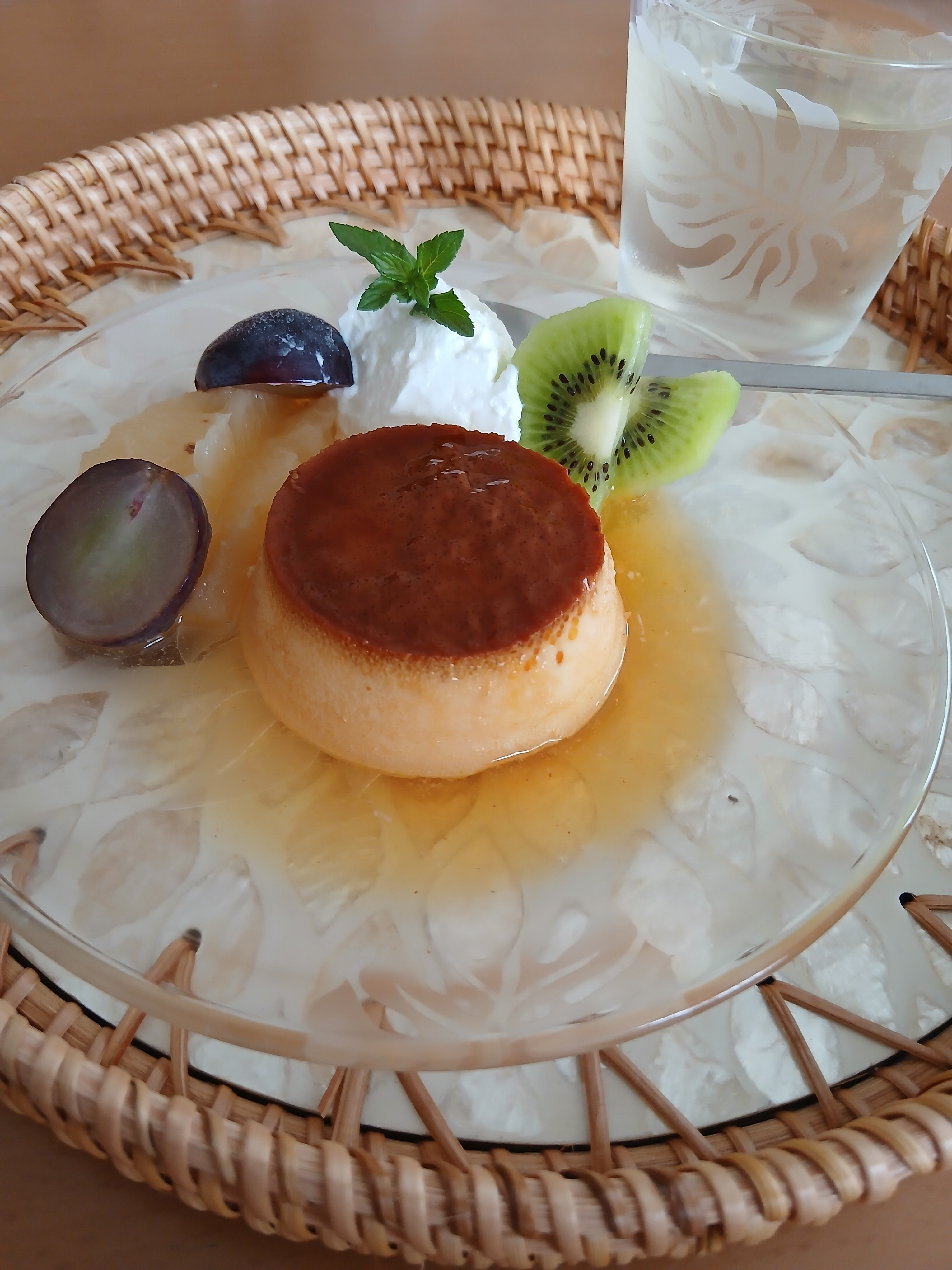 フルーツと一緒に綺麗に盛り付けられていてプリンが輝いてますね🍮✨