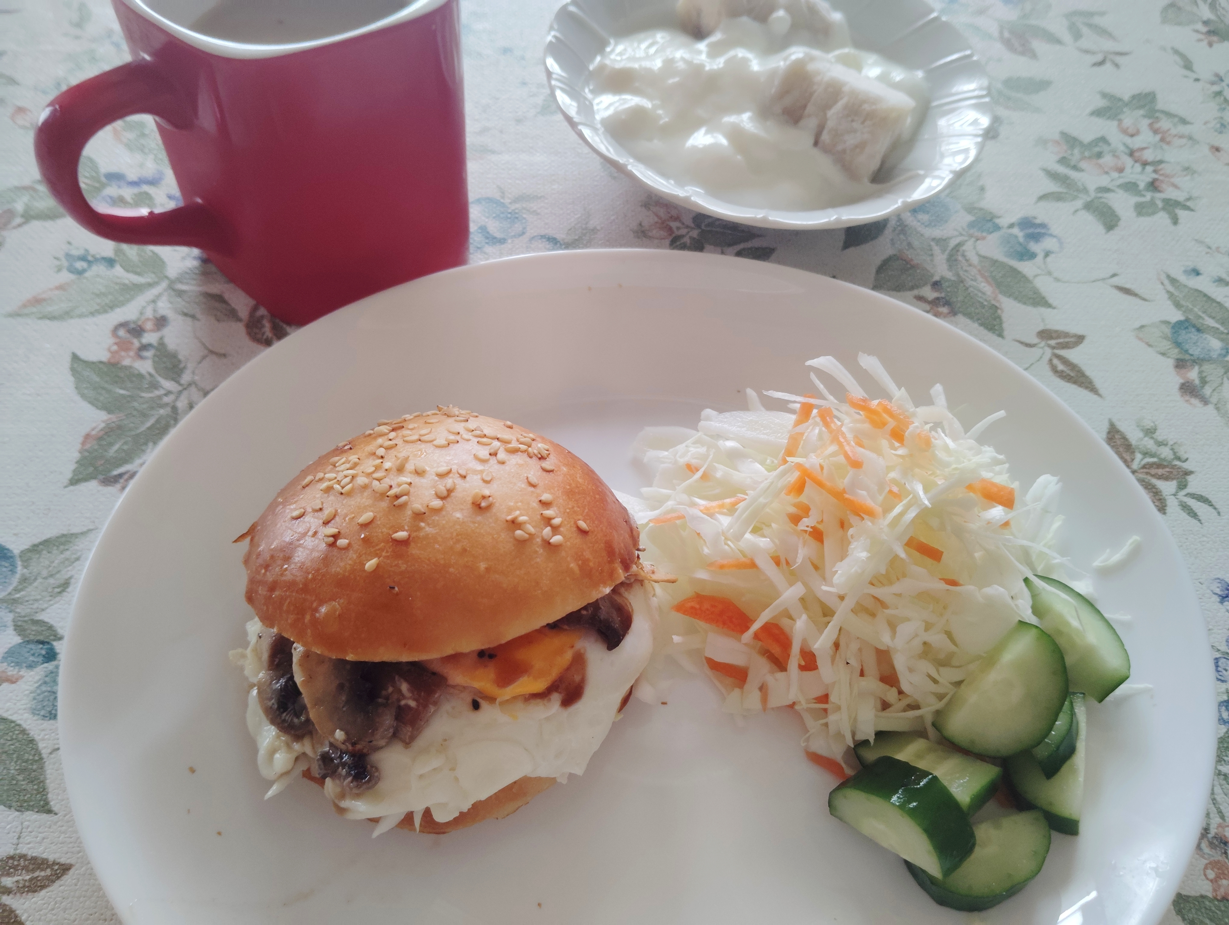 投稿を表示目玉焼きハンバーガーのワンプレート、とっても美味しそうですね。🌻