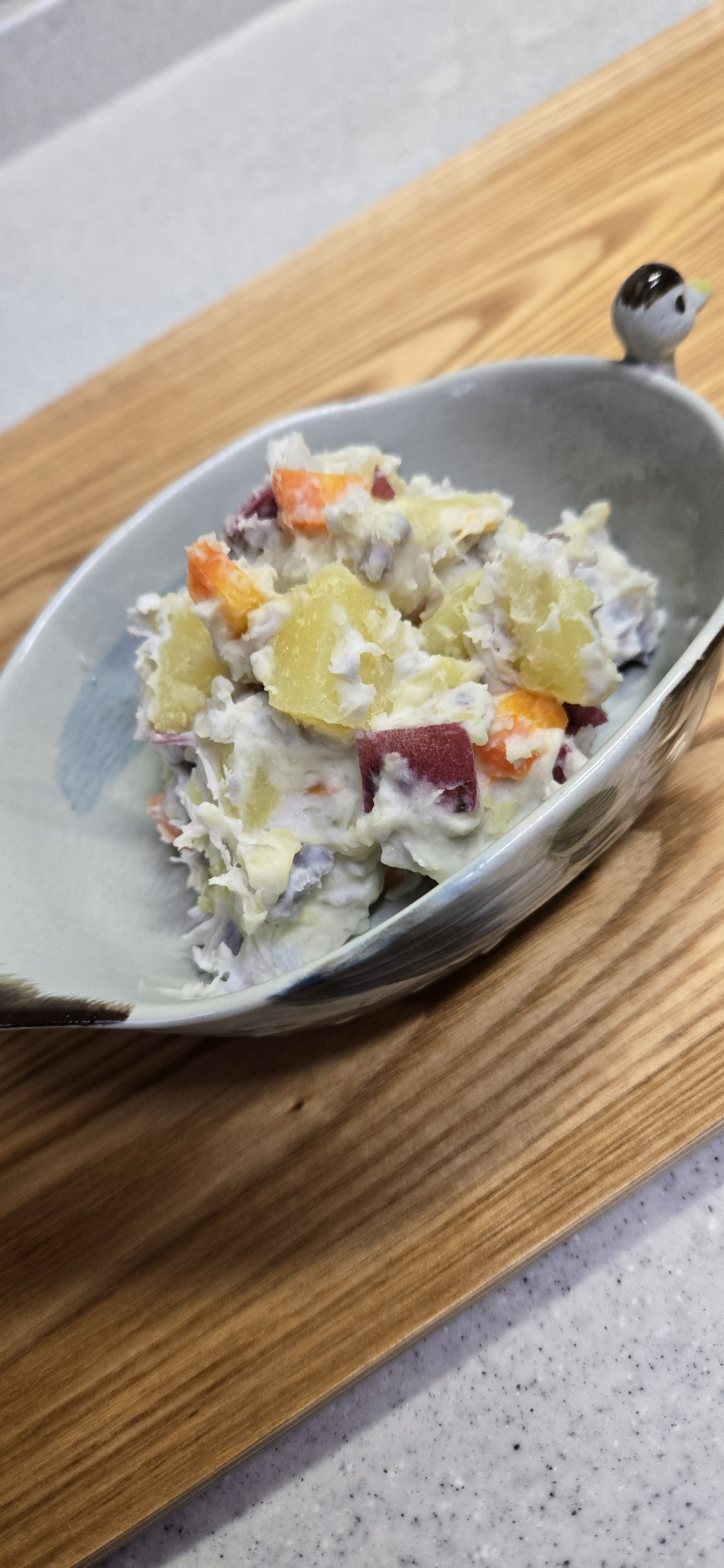里芋🍠さつまいも🥕ニンジン~かぶちゃん沢山の根菜が甘味があってマヨネーズと合って美味しいポテサラになりました❗️