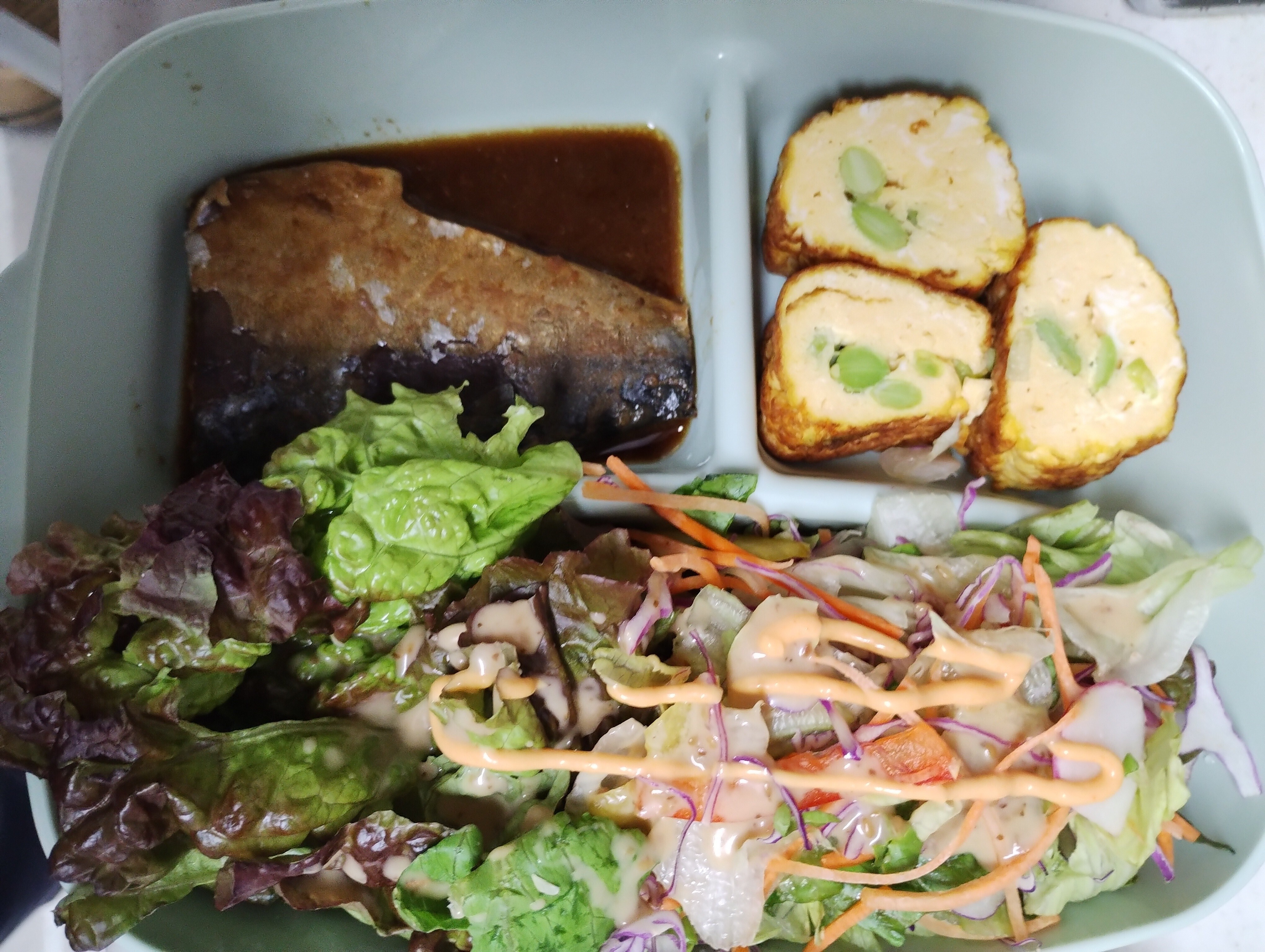 ●野菜サラダ(世界を味わうマヨ 旨辛シラチャー味 掛け)
