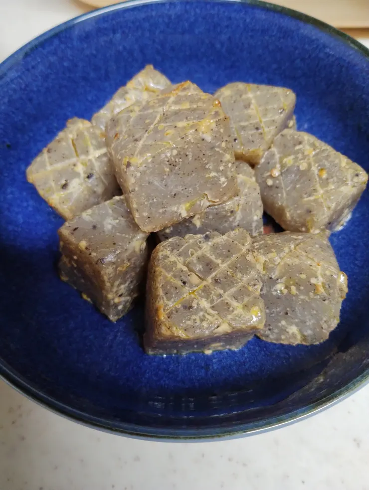 ●こんにゃくのオイスターマヨ炒め(世界マヨ マヨ しびれ麻辣味 使用)