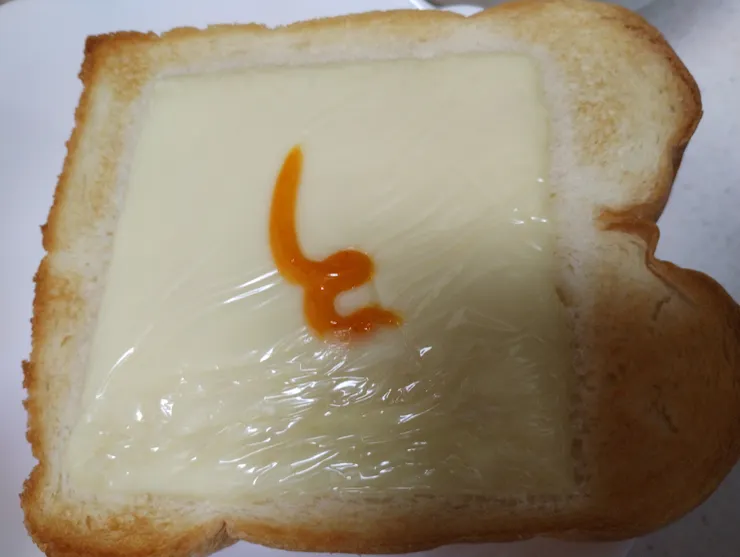 チーズに世界を味わうマヨ 旨辛シラチャ―味 を少量付けトーストしました