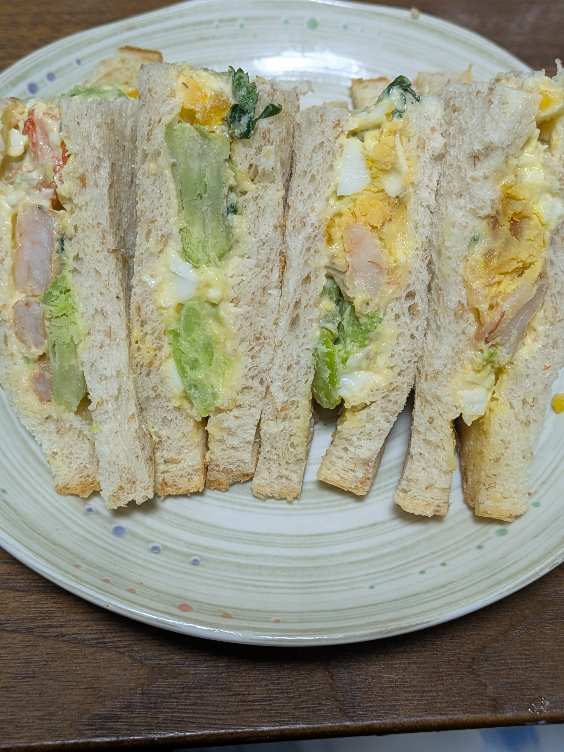 トップ > マヨフォト > 今日のおうちごはん > 卵と海老とそらまめのサンドイッチ たーちゃん 2026/02/07 22:32 卵と海老とそらまめのサンドイッチ 海老とそらまめのサンドイッチにするつもりが、ゆでたまごは単品で食べるつもりが混ぜでしまいました。 いいね コメントする 2 件の返信 (新着順) ミュートしたユーザーの投稿です。 投稿を表示 トクちゃん 2026/02/08 16:08 そら豆の緑が綺麗ですね、美味しそうです。 いいね 返信する ミュートしたユーザーの投稿です。 投稿を表示 スモークサーモン ポテサラ部 なめらか派 2026/02/08 01:42 たーちゃん 具沢山で美味しそうですね😋 いいね 返信する