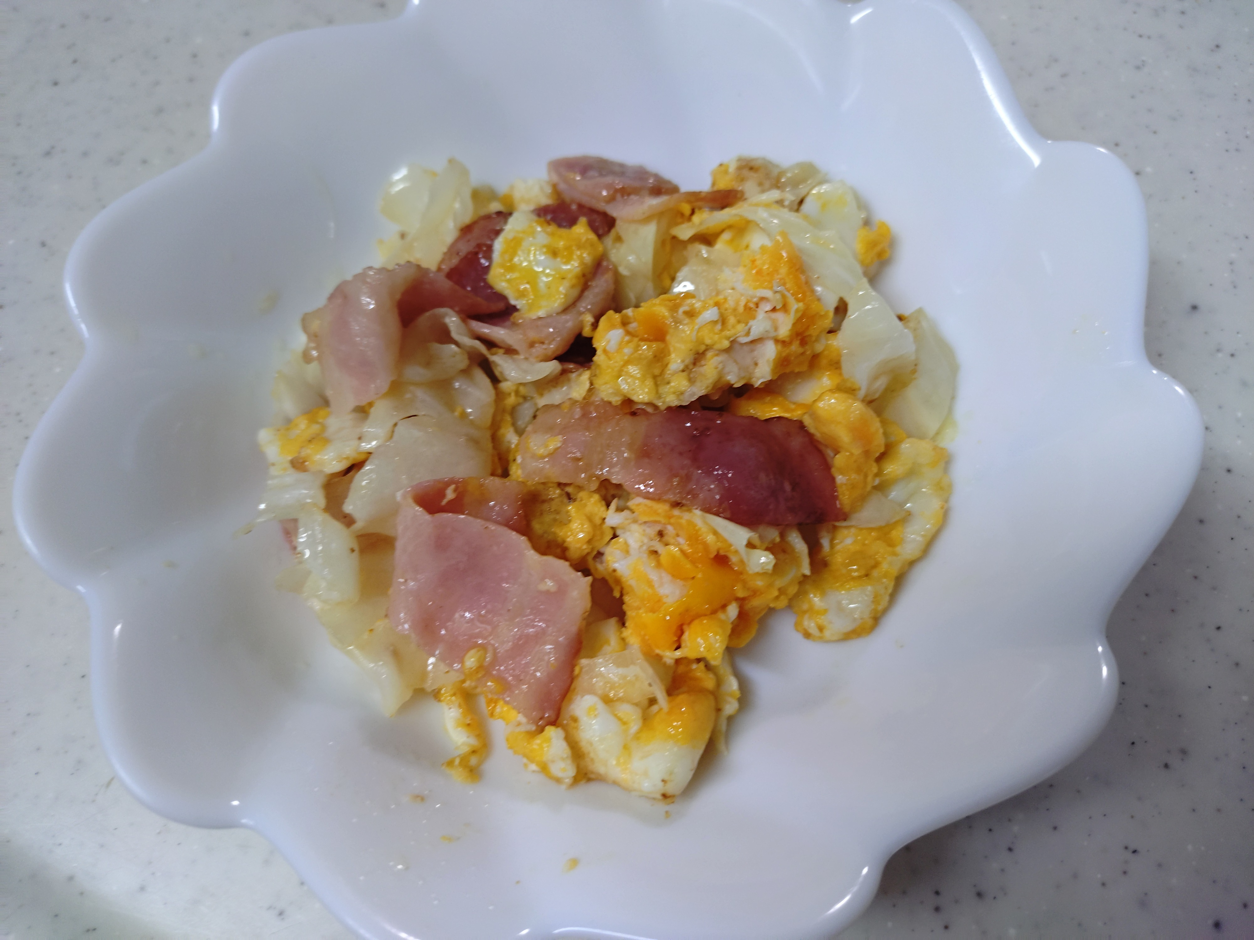 投稿を表示たまご、キャベツ、ベーコンを使ったマヨ炒めおいしいですよね