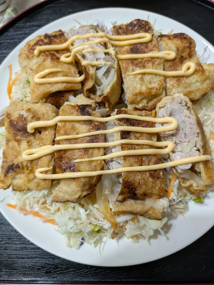 油揚げにもマヨネーズが塗られていて蒸し焼きにするのですね、揚げずに食べられるのもいいですね。