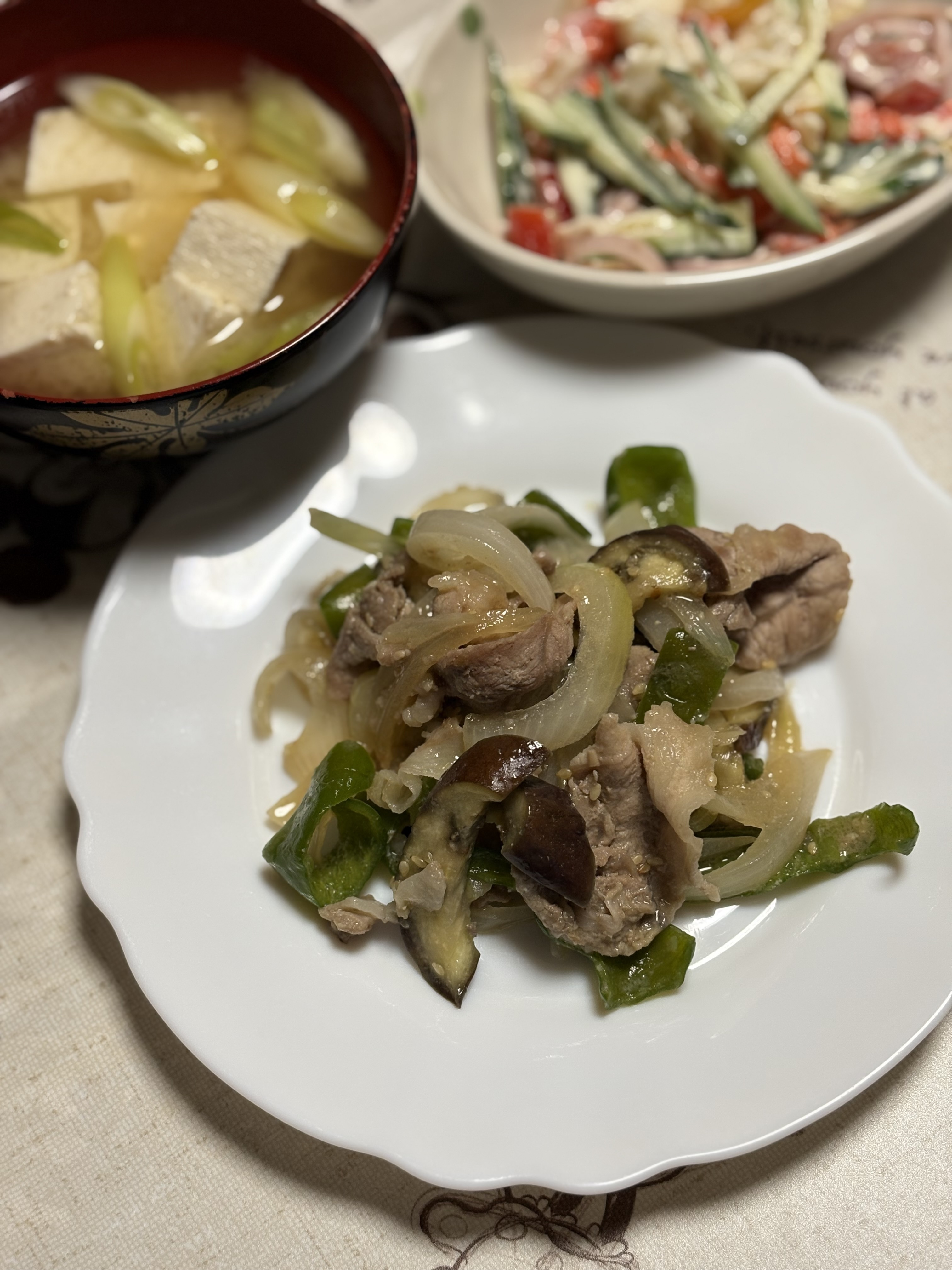 昨日の夕飯に豚肉とナス🍆ピーマン🫑の味噌炒めを作りました。