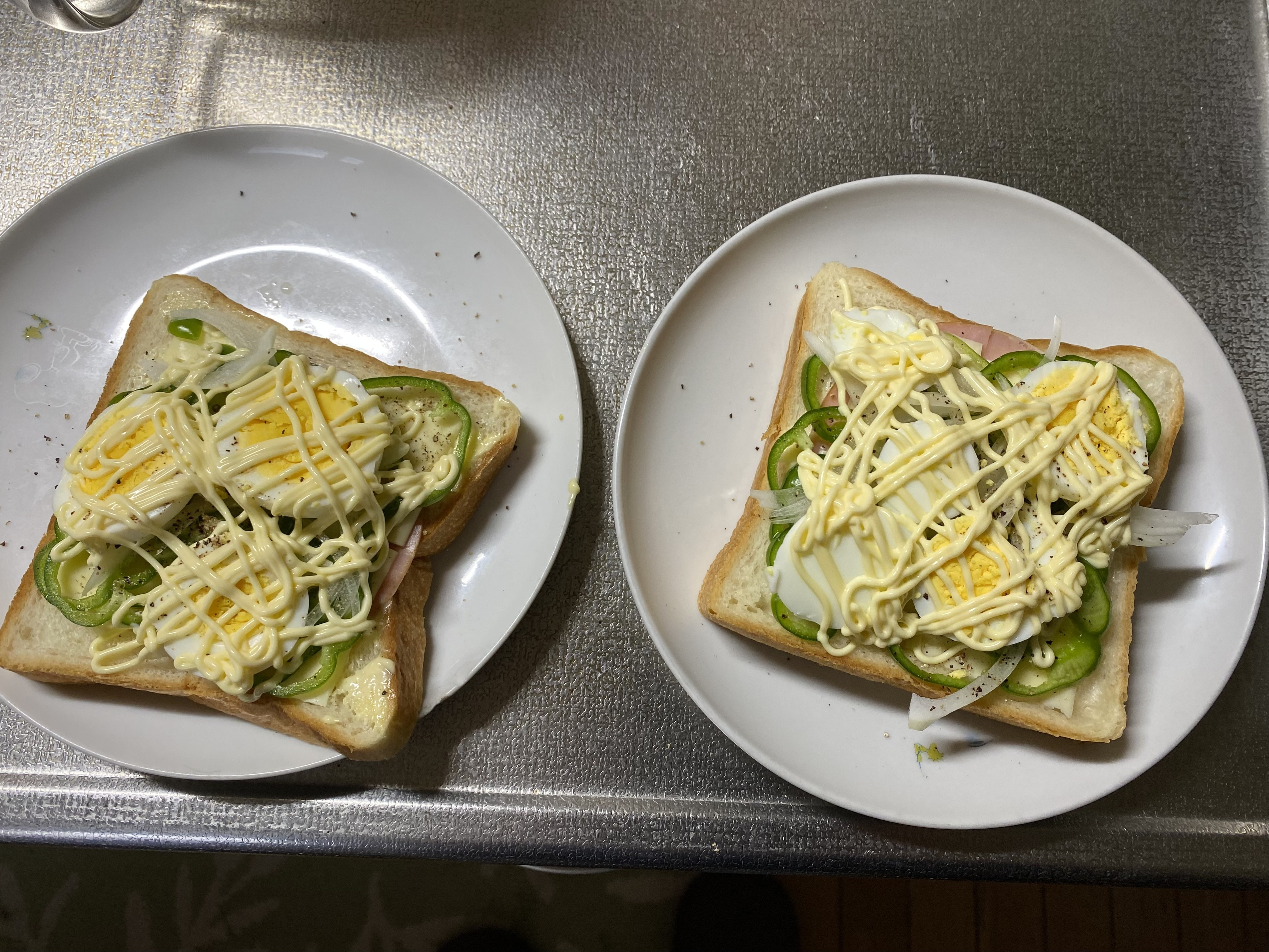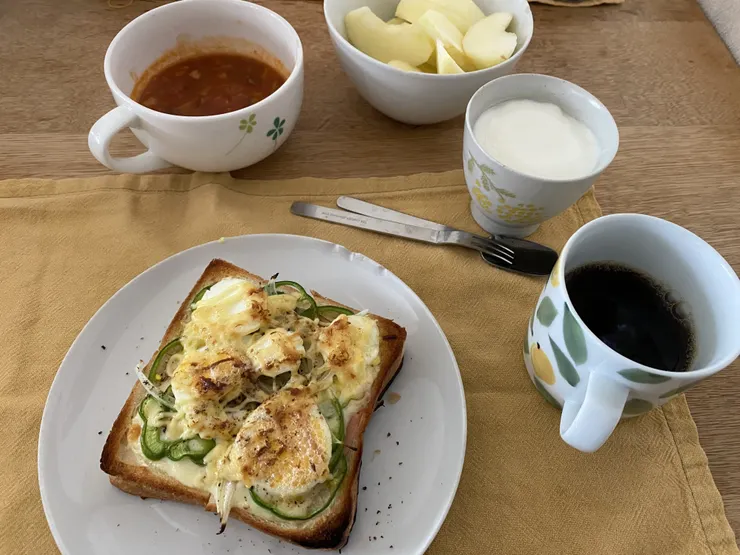 ハムチーズゆで卵のマヨネーズトーストです😊
