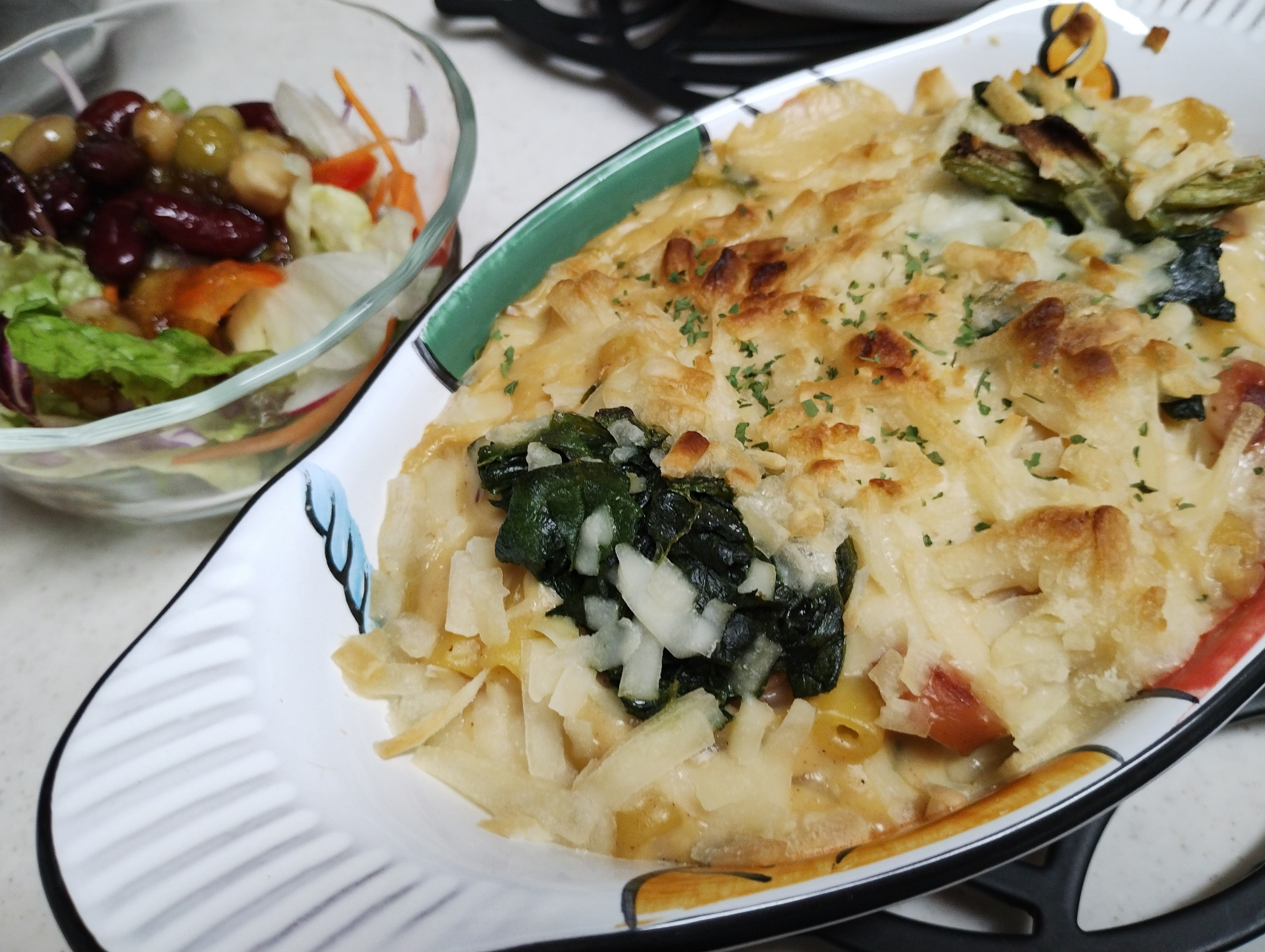 投稿を表示アツアツのほうれん草入りマカロニグラタンを食べたいです