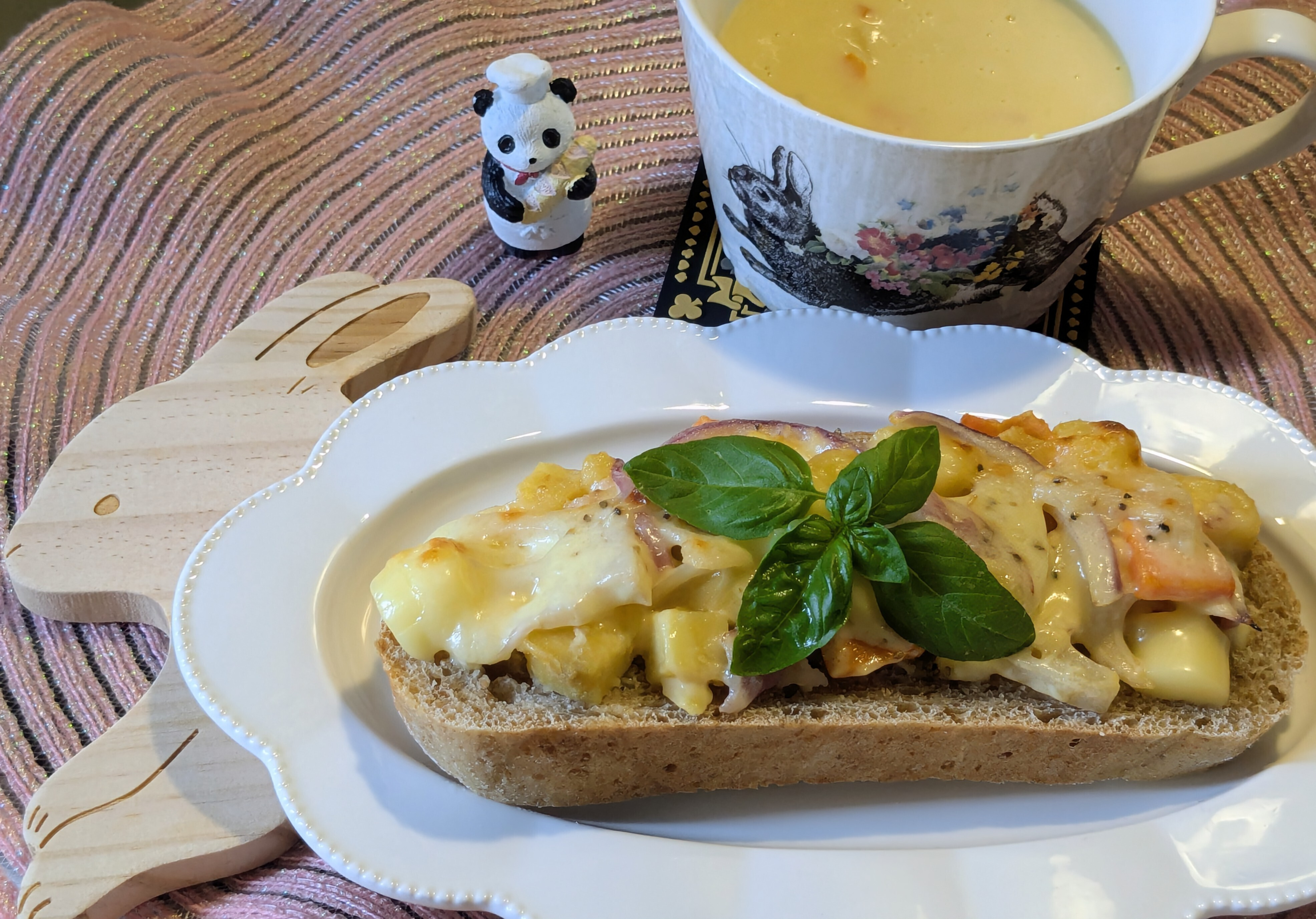 投稿を表示さつまいも🍠でタルティーヌ、サラダ•ポタージュスープ、美味しそうですね。
