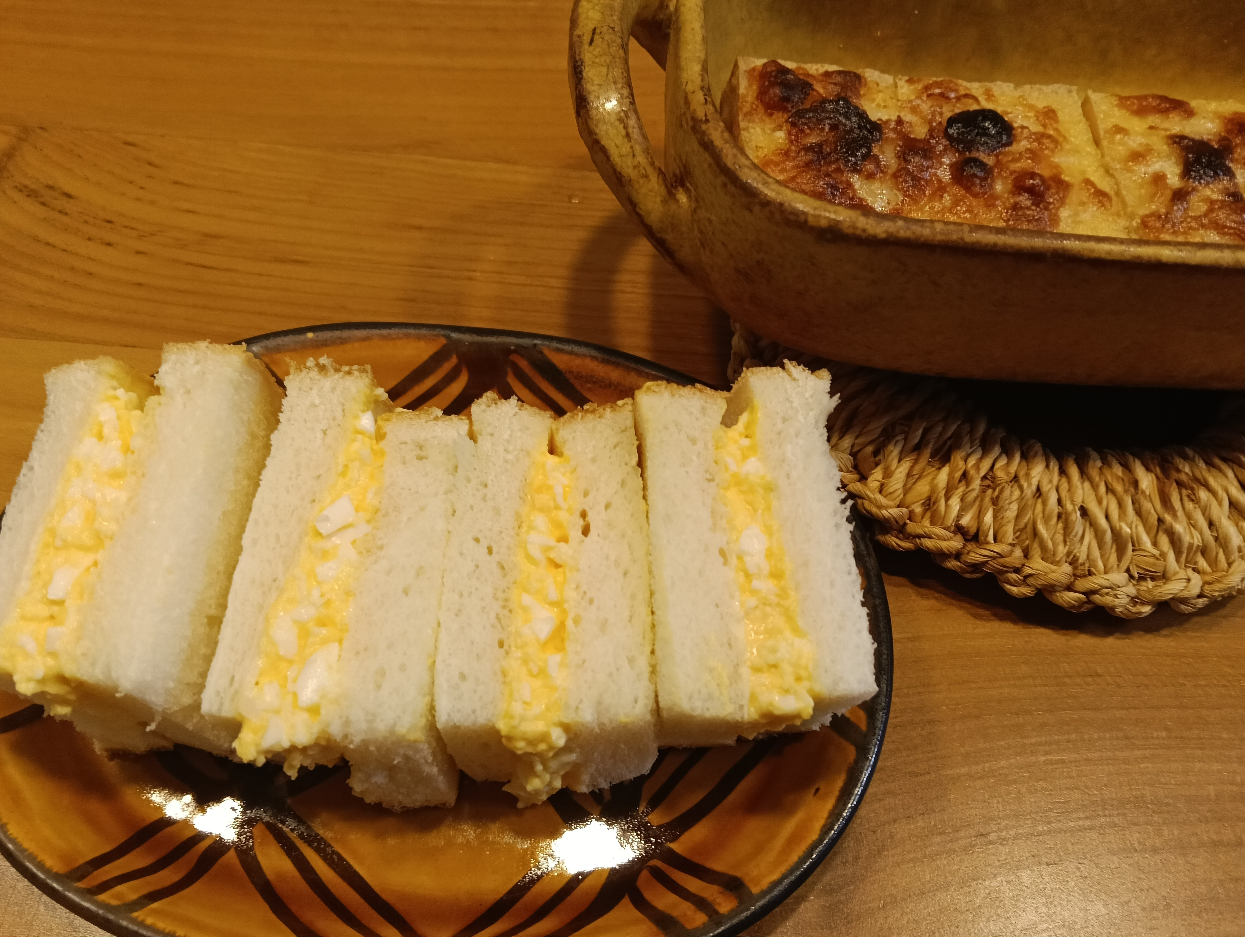 息子は卵を潰してマヨと和えて、卵サンドイッチに。