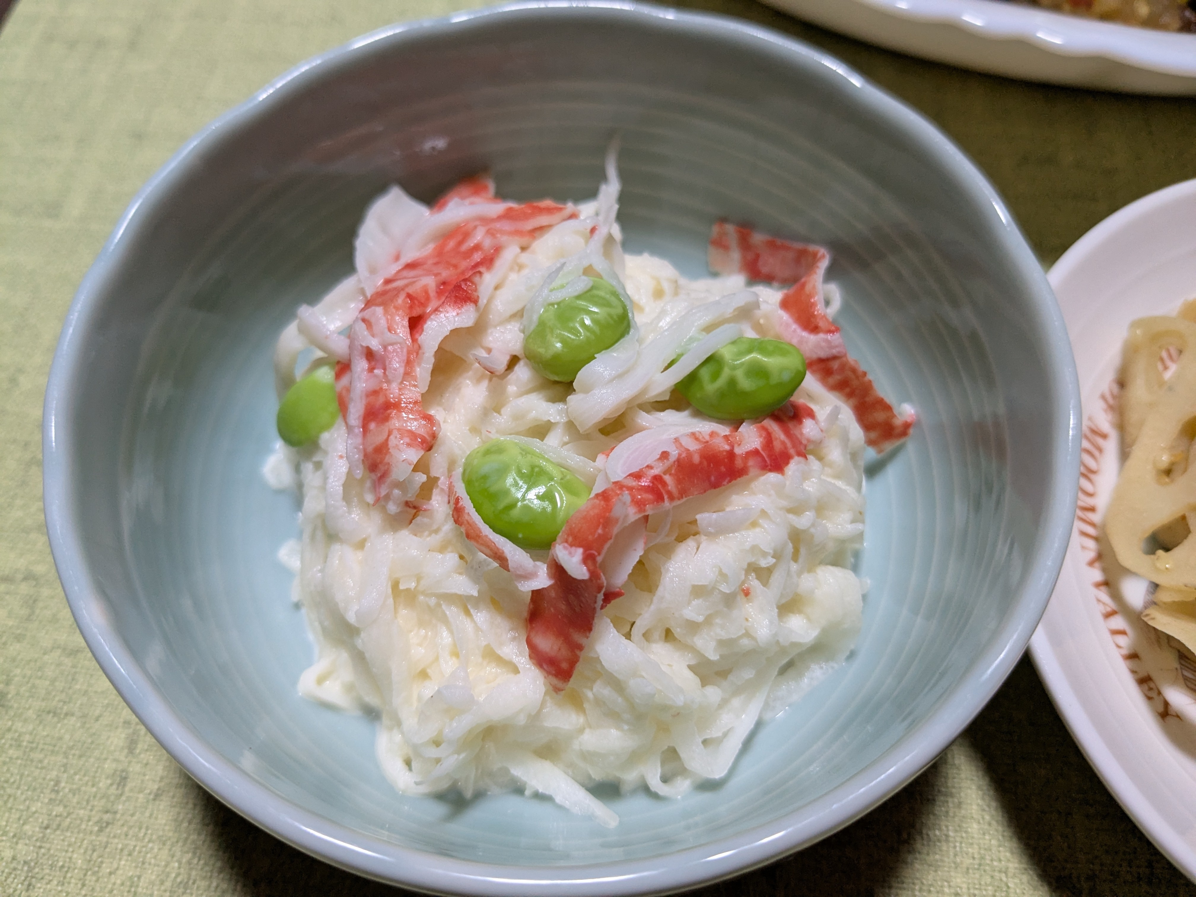 投稿を表示大根とカニカマのサラダ、枝豆とで彩りも良くて美味しそうですね。🌻