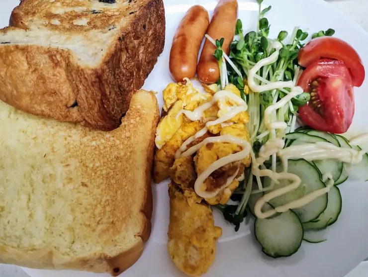 スクランブルエッグはキユーピーマヨネーズを混ぜ合わせ作りました