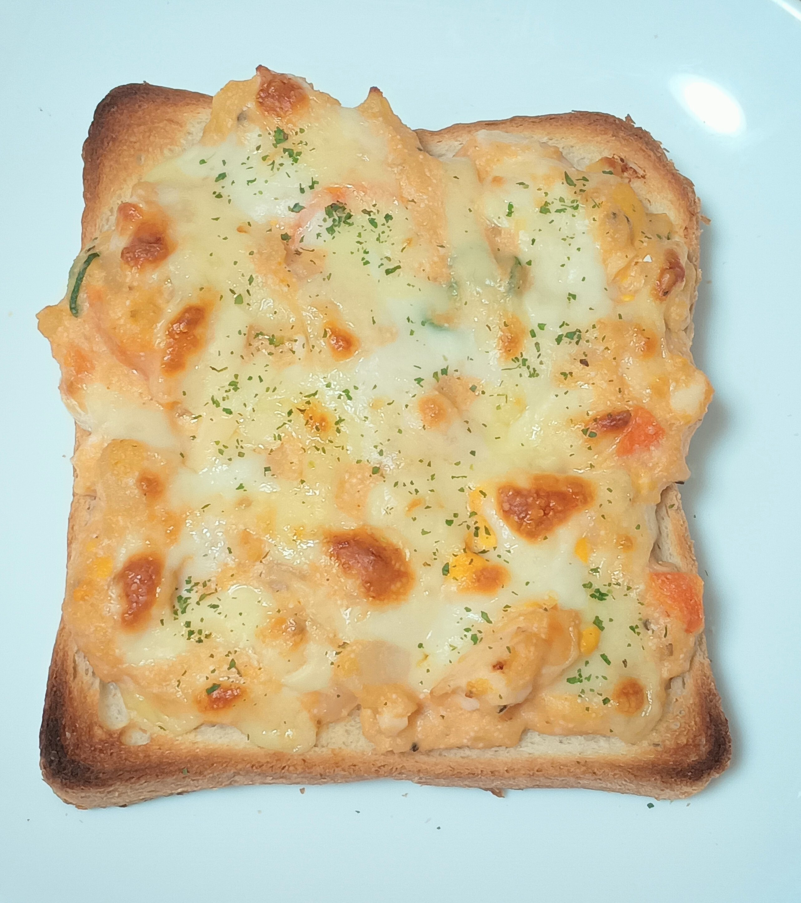 投稿を表示タラモサラダのチーズトースト、焼き色もついてとっても美味しそうです。🌻
