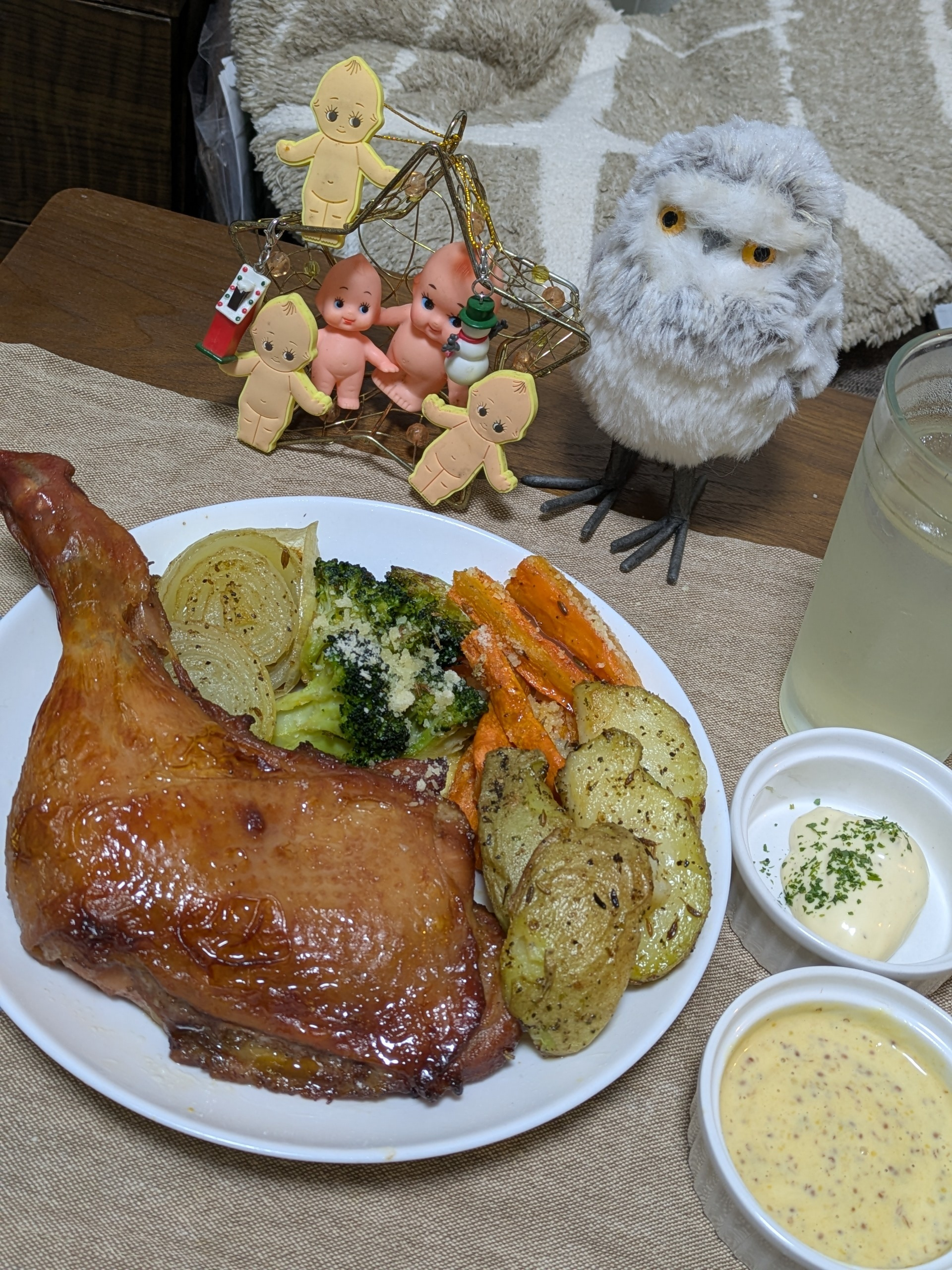トップ > マヨフォト > マーマレード&マヨネーズのローストチキン たーちゃん 2025/12/24 20:35 マーマレード&マヨネーズのローストチキン いったん骨に沿って切り込みとフォークでぷすぷす刺してスパイスとマヨネーズで漬け込んでから、再度つけダレで漬け直しフライパンで焼きました。焼き野菜にもクミン、コリアンダー、塩こしょうして焼きアイオリソース、ハニーマスタードマヨソースの2種のディップソース。マヨ好きのクリスマス。 いいね コメントする 3 件の返信 (新着順) ミュートしたユーザーの投稿です。 投稿を表示 豆花 2025/12/25 18:18 キューピーちゃん達が食べたそうですね いいね 返信する ミュートしたユーザーの投稿です。 投稿を表示 ばぁばちゃん 2025/12/25 12:45 たーちゃん ローストチキンの焼き色最高💕 Merry Xmas🎅🎄 いいね 返信する ミュートしたユーザーの投稿です。 投稿を表示 マヨ ポテサラ部 ごろごろ派 2025/12/25 07:25 メリークリスマス ローストボーク美味しそうですねー クリスマスに最高の一品ですねー いいね 返信する