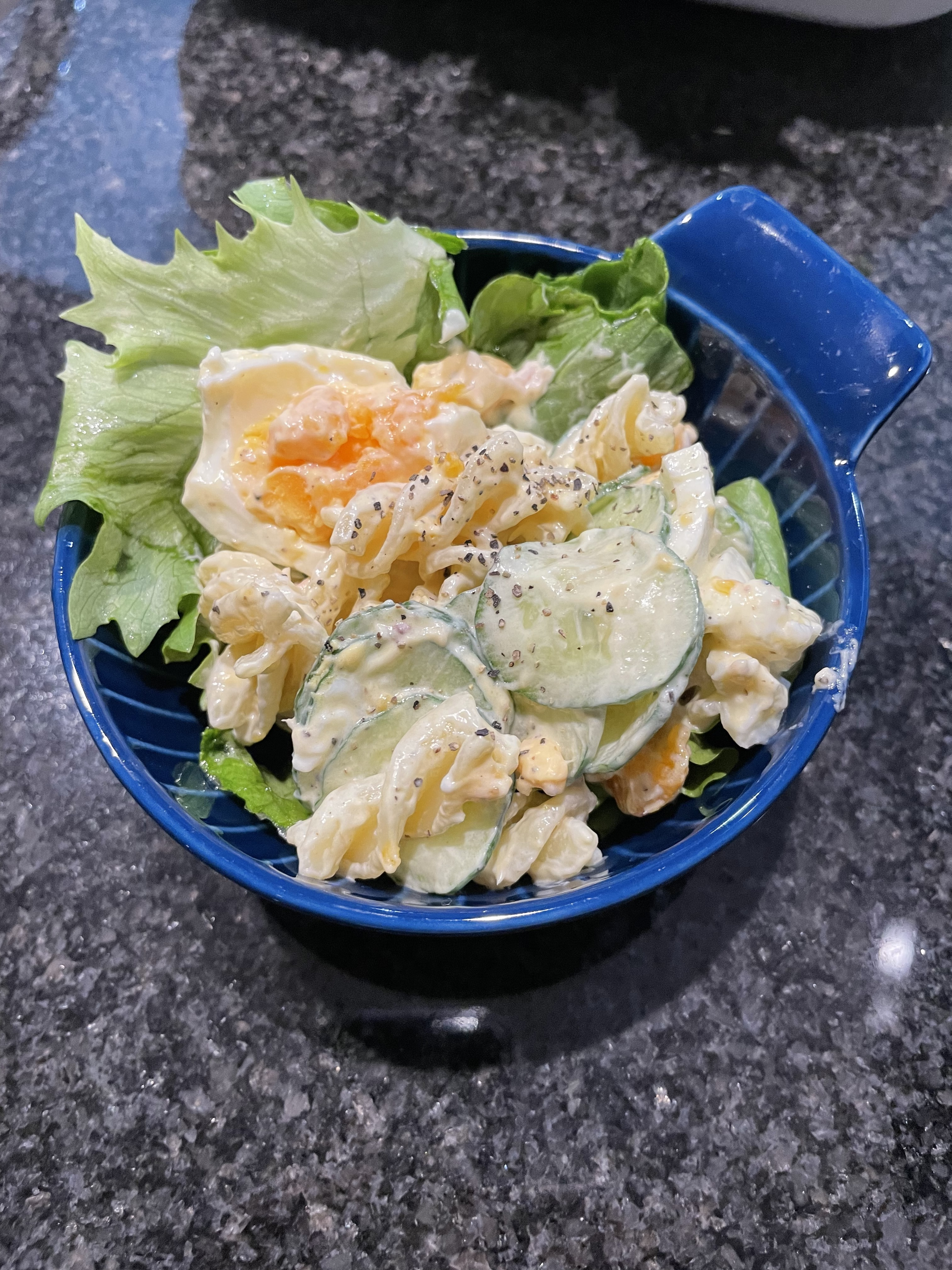 サラダにはやっぱり卵はやキュウリは合いますね。