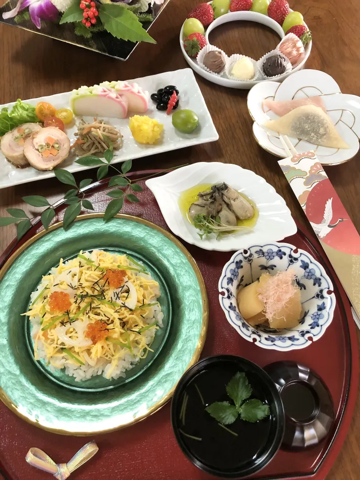 1日目と違った盛り付けセッティングでご家族と楽しい美味しいお正月で素敵です。🌻