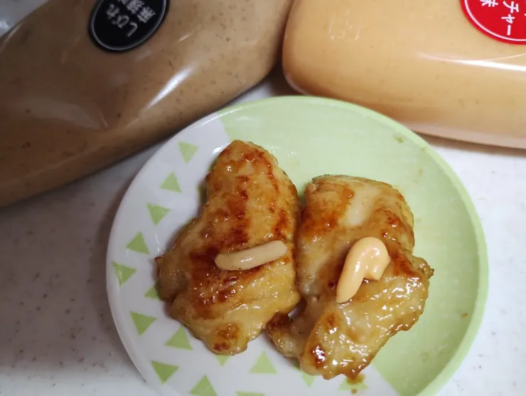 鶏むね肉の照り焼きの 肉だねに マヨネーズを使用しました