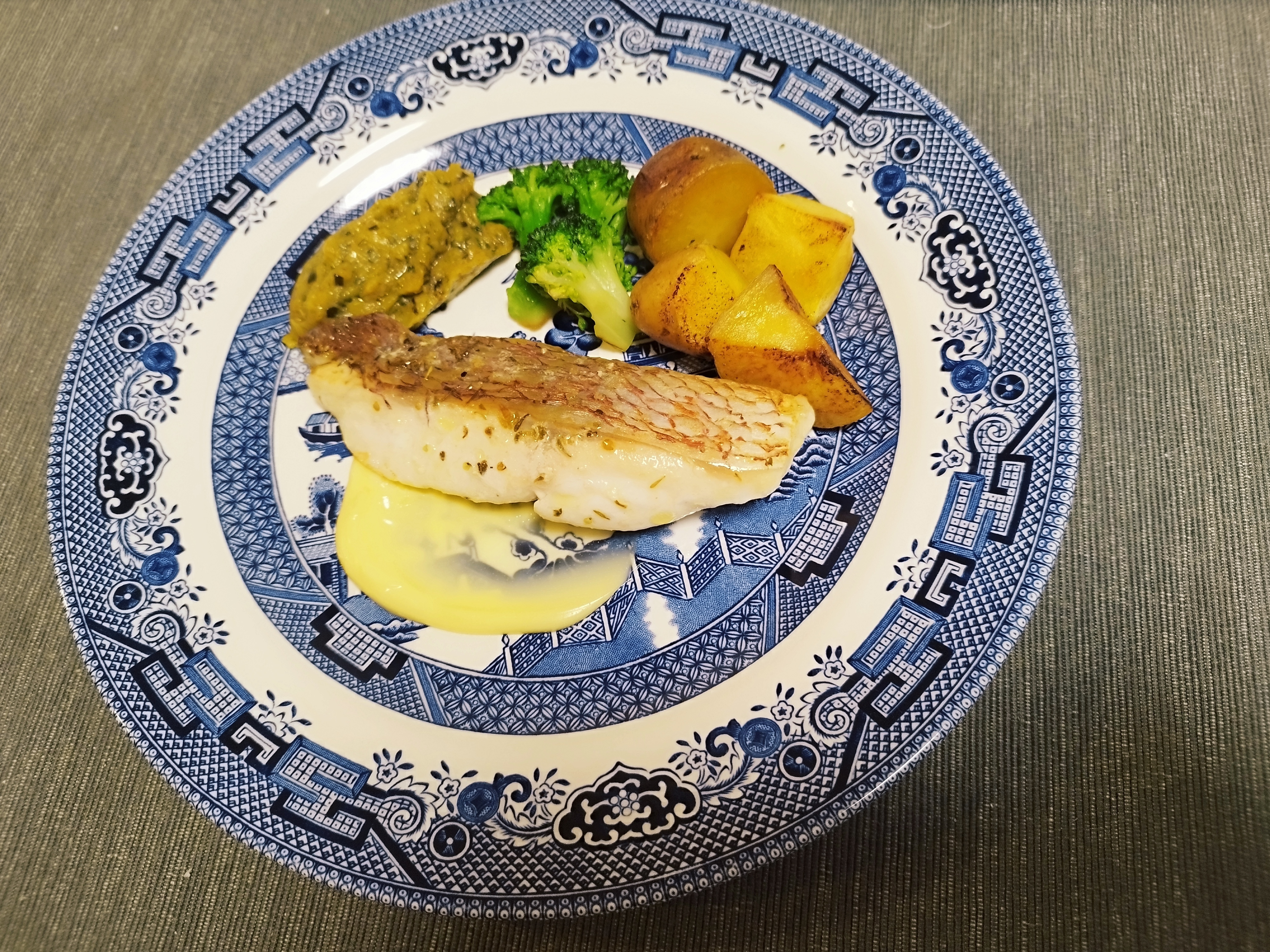 真鯛のソテーとズッキーニのピュレにマオンソースを添えました。ミールキットだったので私でも簡単に作れました。