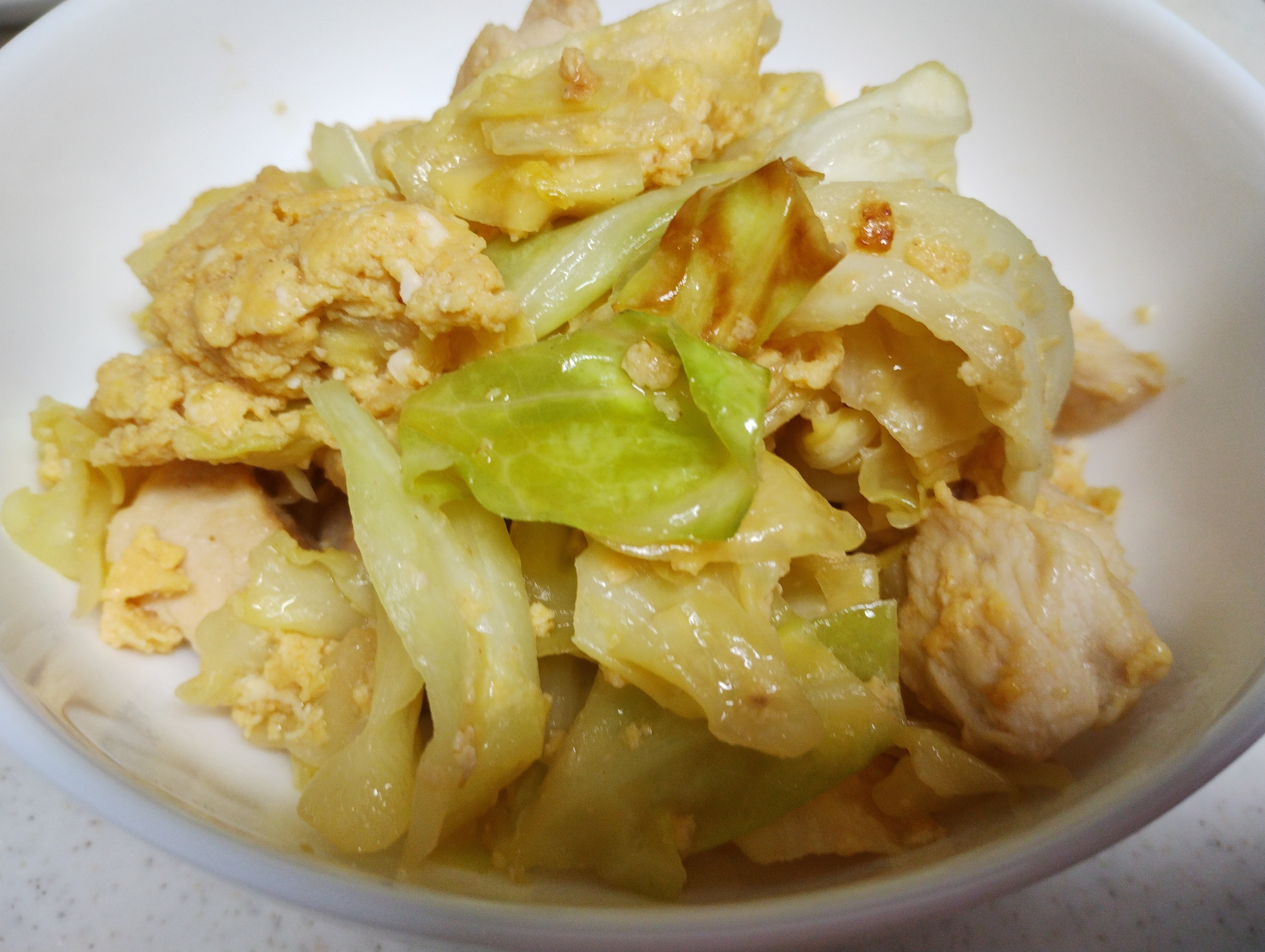 キャベツと卵と鶏むね肉のみそマヨソテー