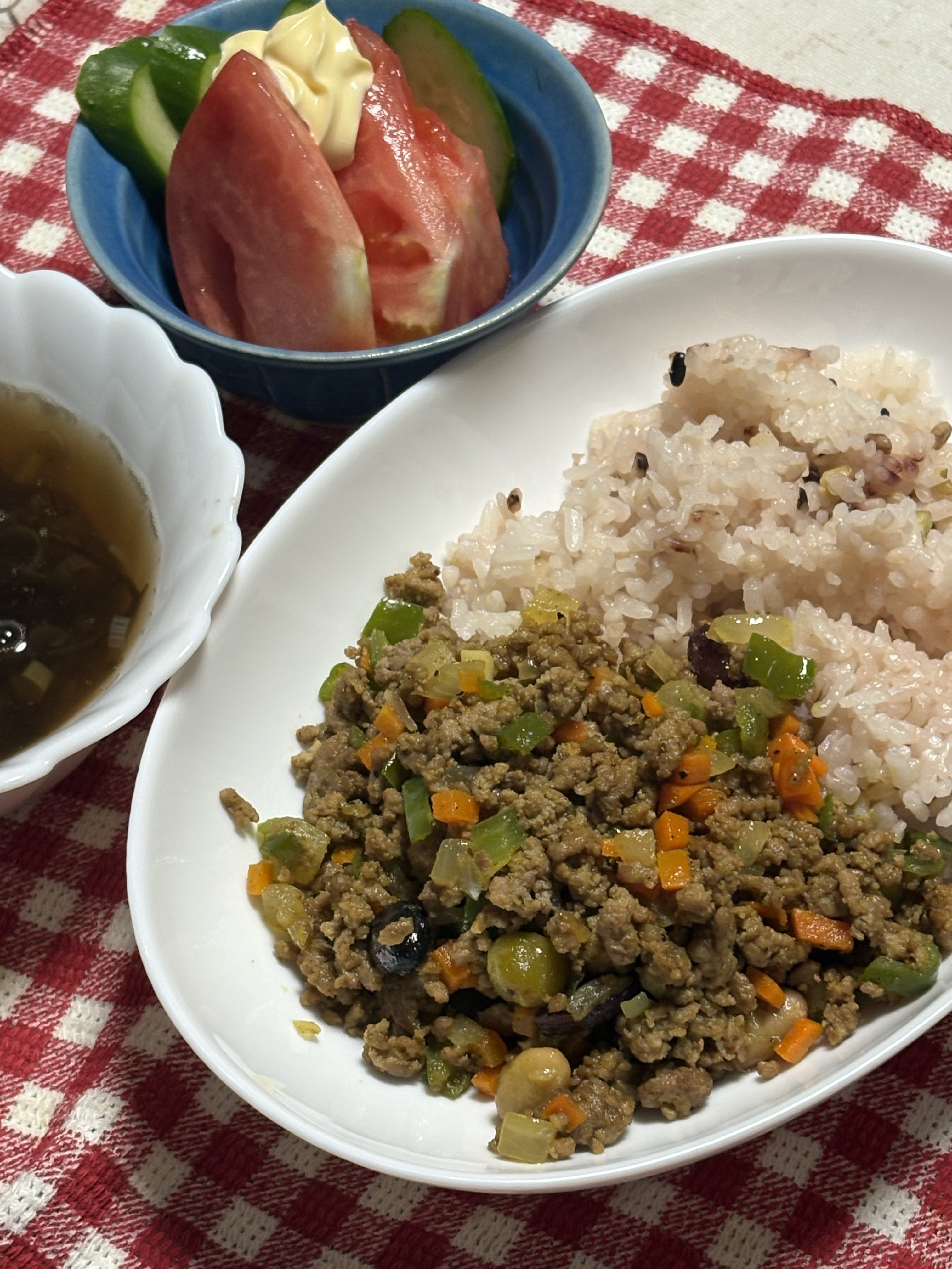 投稿を表示お野菜やお豆いりで健康的でご飯もひと工夫されてサラダもありバランスバッチリでおいしそうですね😋