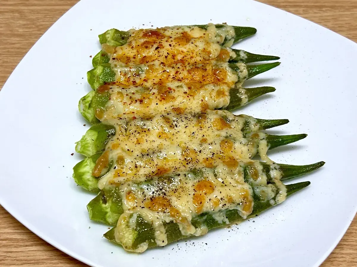 こんがり焼けたチーズとキユーピー マヨネーズのコクが、オクラにとても良く合う一品ですね。