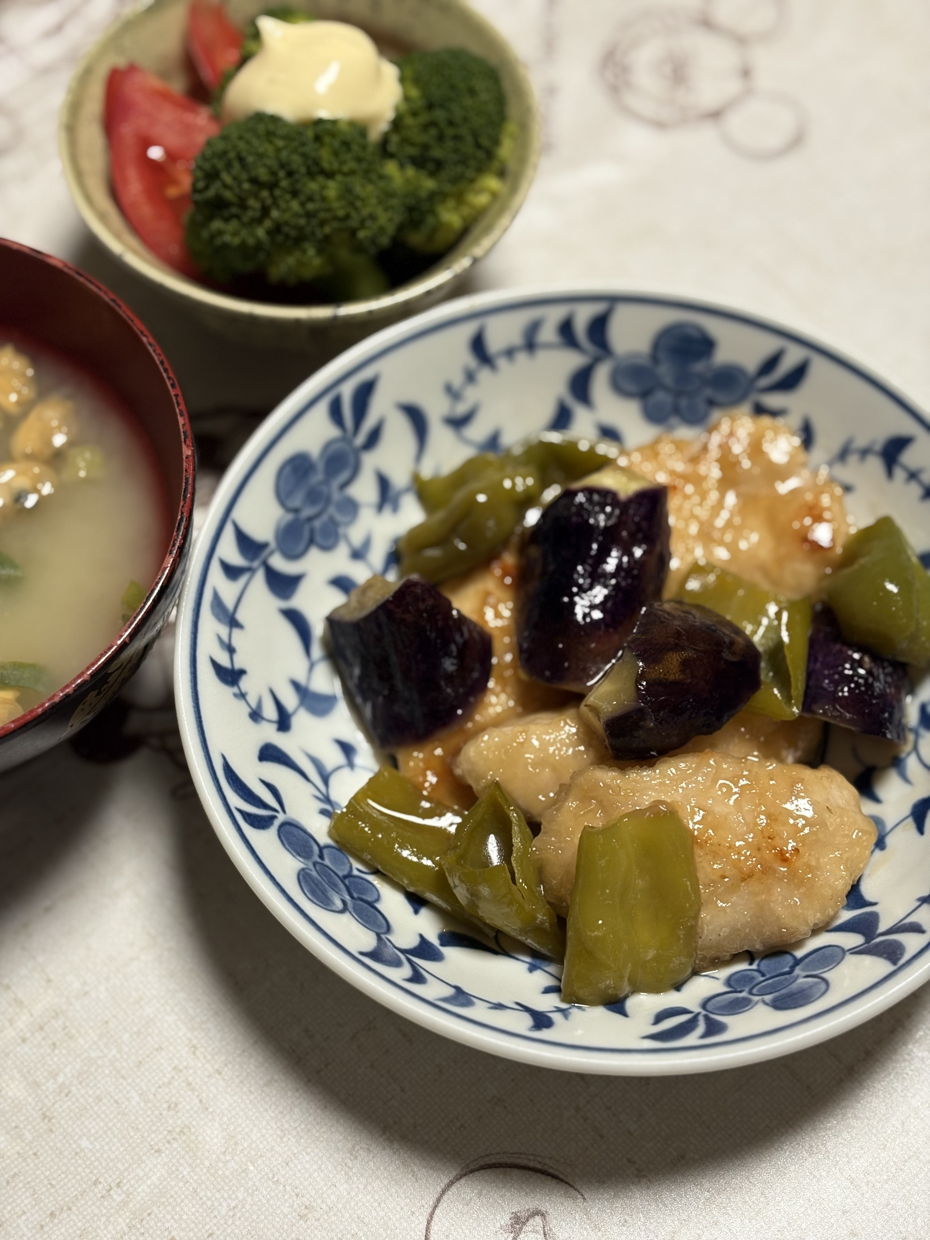 昨日の夕食に鶏肉と野菜の時雨煮(市販のタレ使用)を作りました。一口大に削ぎ切りしたムネ肉にマヨを絡めて15分程置き片栗粉を付けて焼きます。一旦取り出してナス、ピーマンを炒め鶏肉を戻しタレを投入。甘酢の時雨煮美味しく頂きました🙏