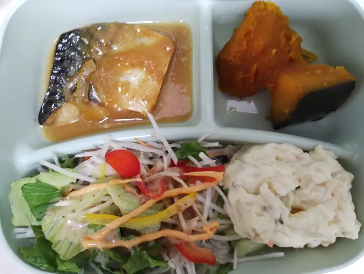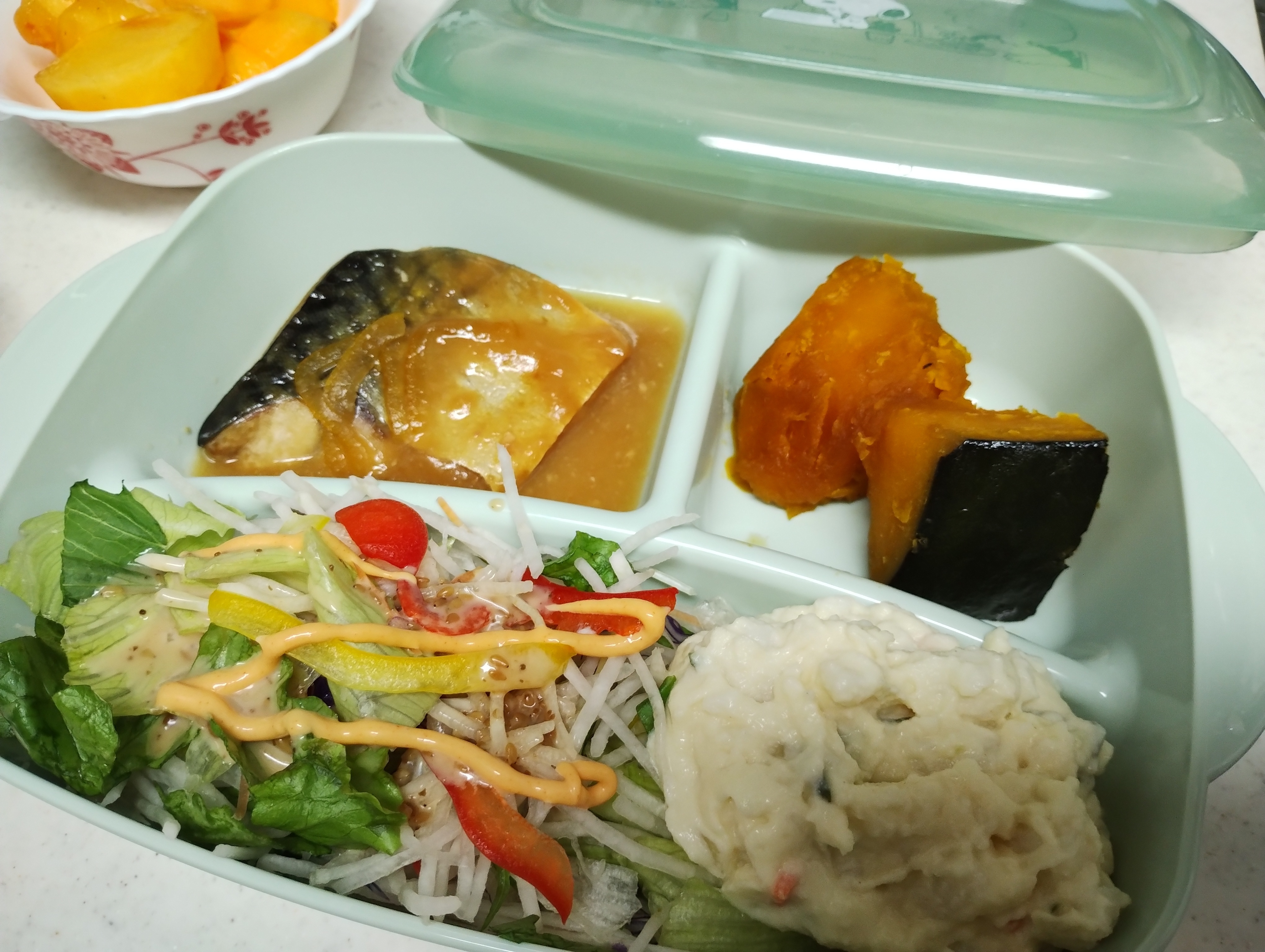 投稿を表示サラダにかぼちゃの煮付けに鯖も美味しそうです🍴😋