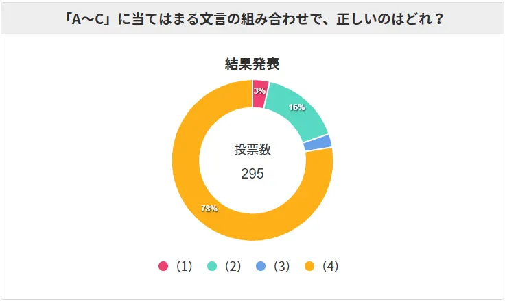 みなさんの回答を見ると、(4)を選んだ方が一番多くいらっしゃいました。