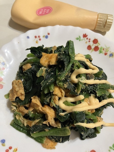 ほうれん草がまだ高くて、冷凍を使いました🥰