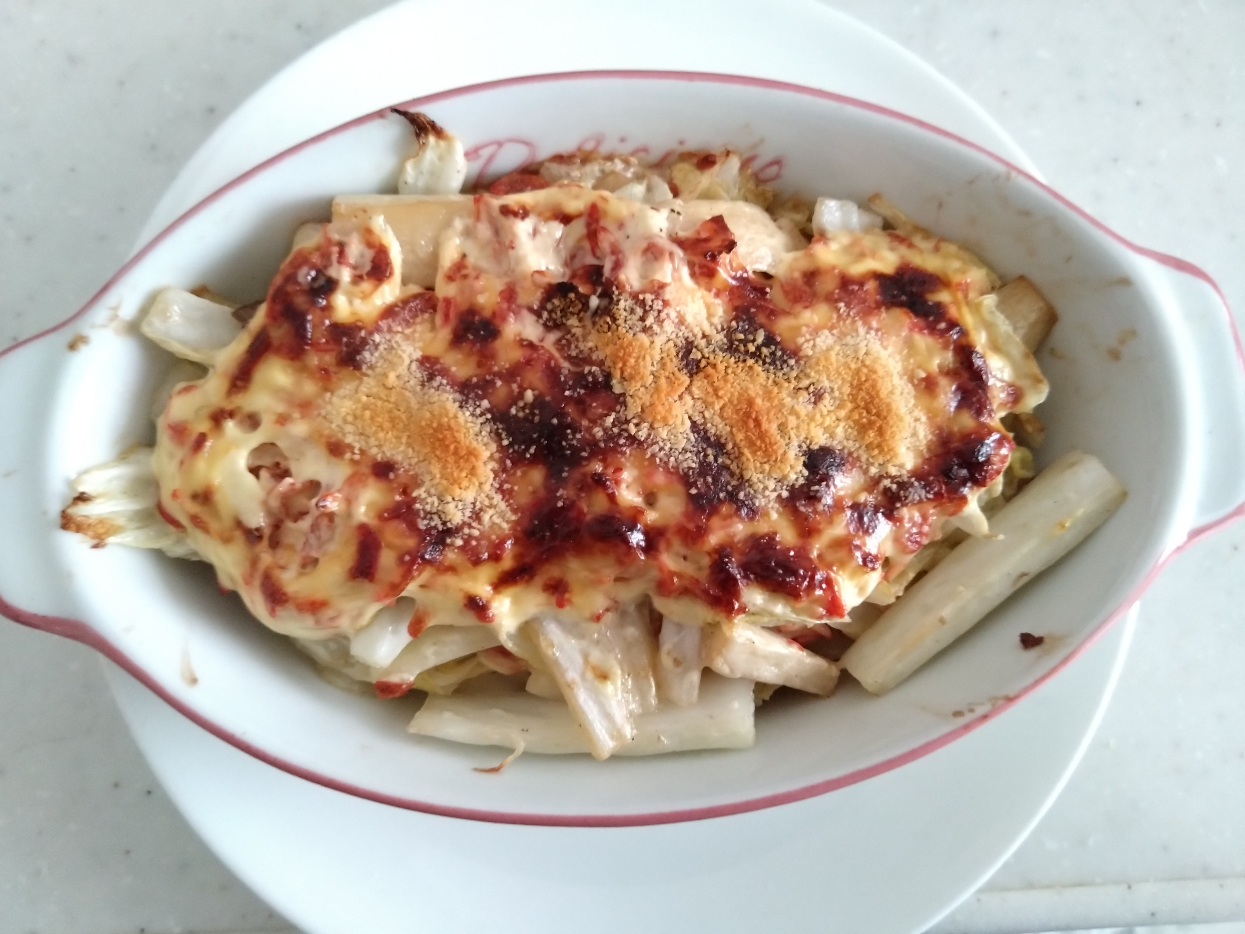 公式サイトの白菜と舞茸の桜海老マヨ焼きを作りました