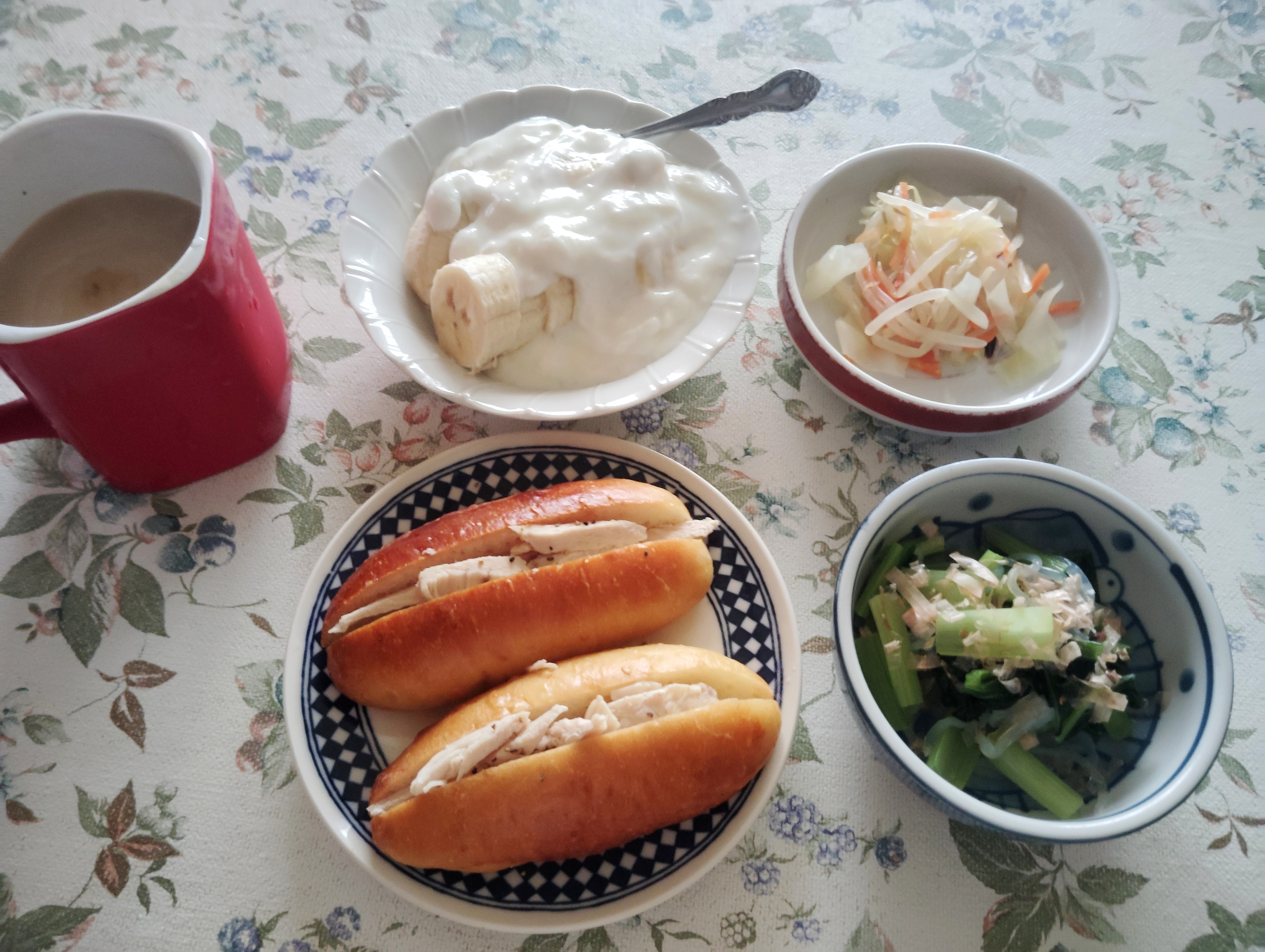 投稿を表示鶏むね肉のサンドイッチの朝ごはん、美味しい食卓ですね。🌻
