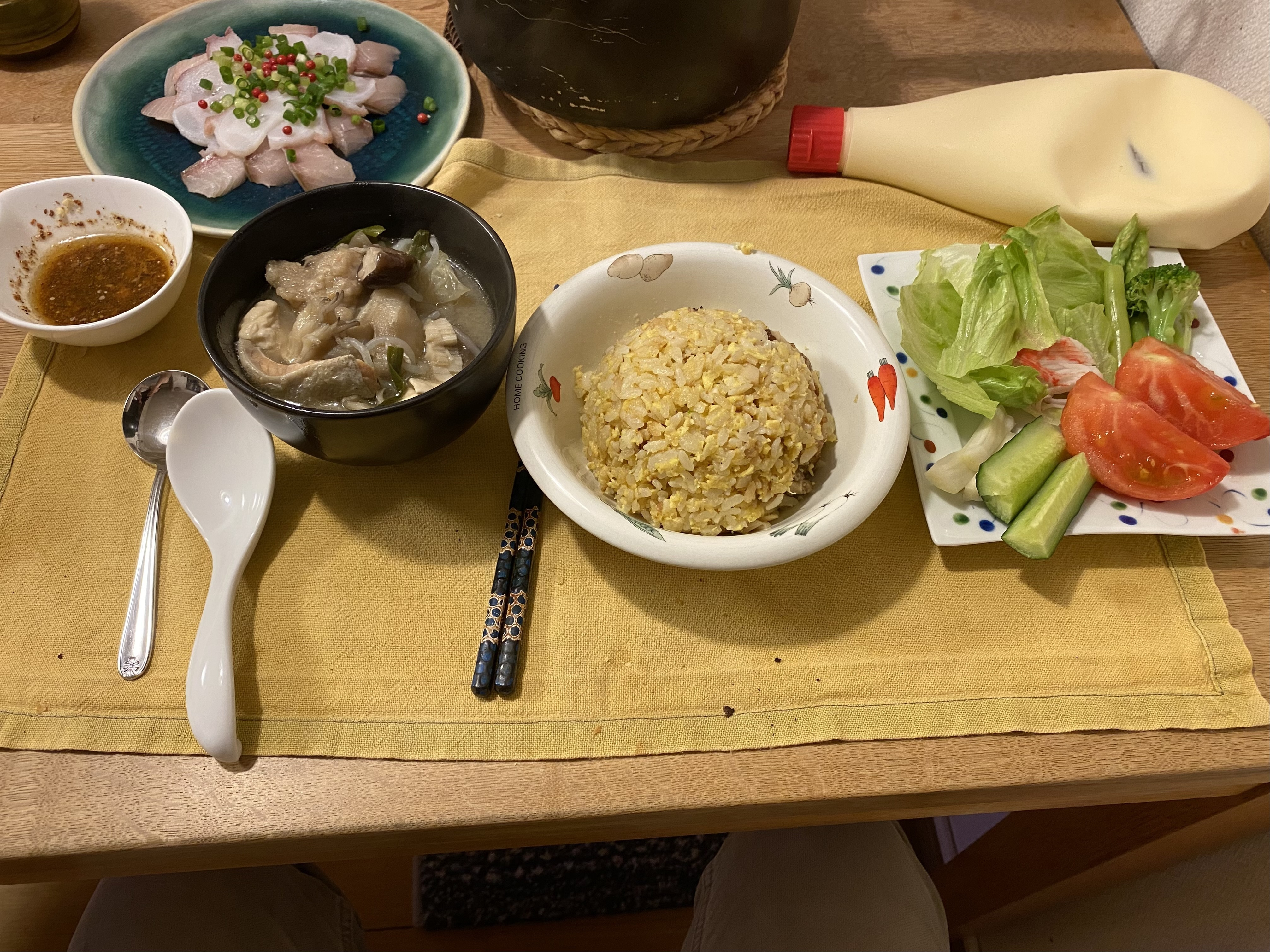 投稿を表示パラッとチャーハンと主菜とカルパッチョとサラダ、とっても美味しそうですね。🌻