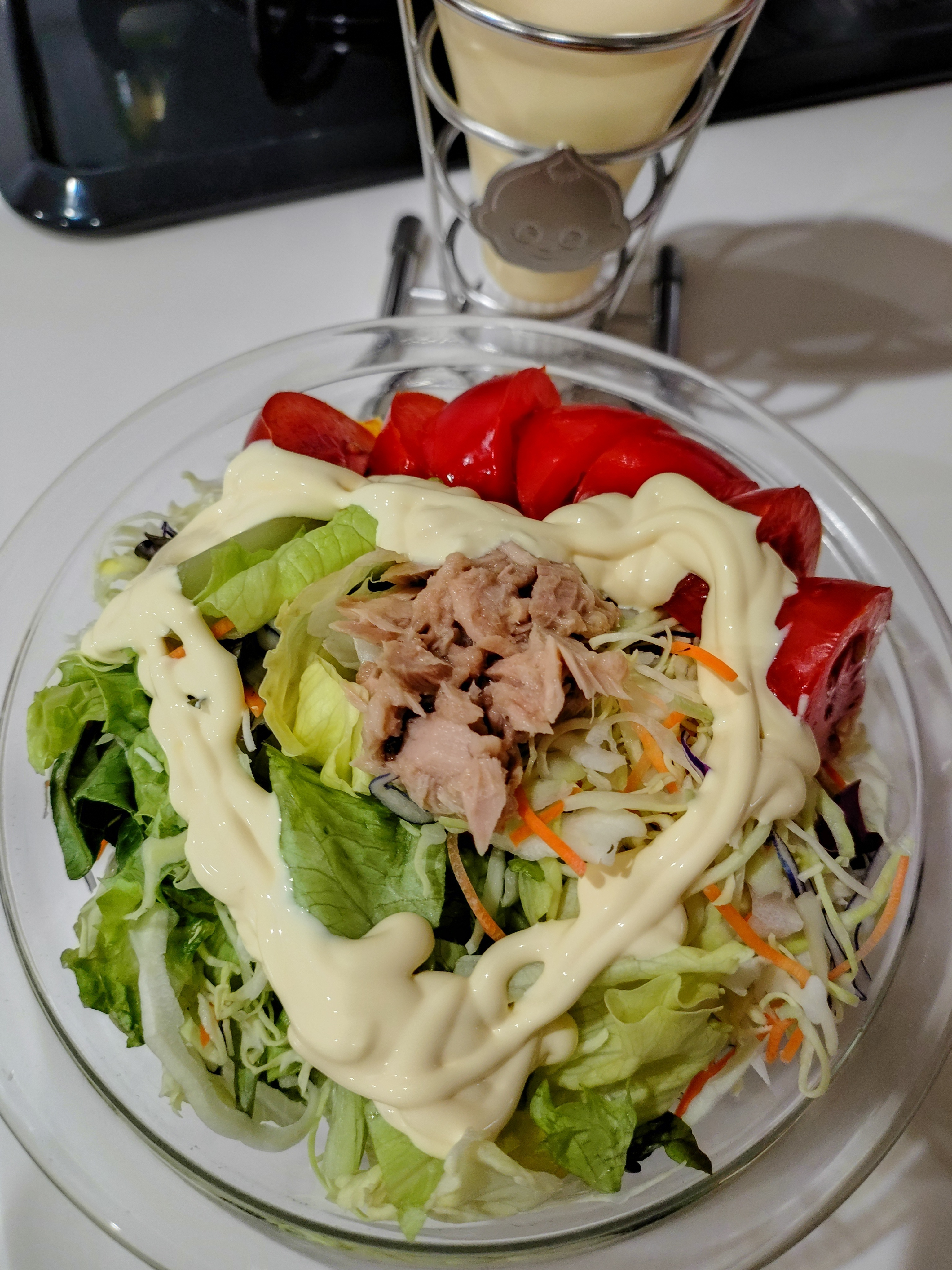 沢山のお野菜のサラダにたっぷりのマヨネーズ、とっても美味しそうです。🌻