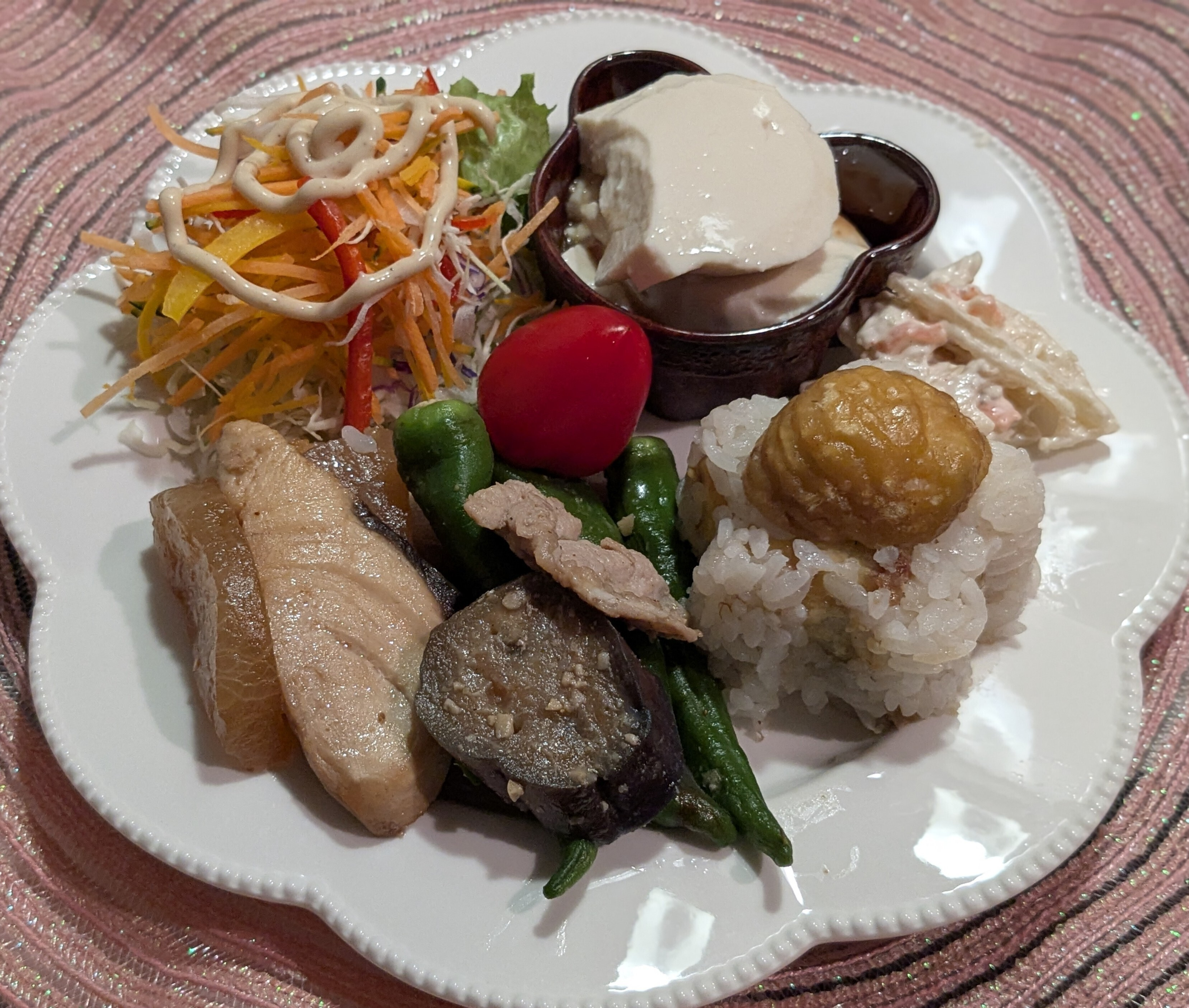 投稿を表示たくさんの種類のおかずが乗ったワンプレートですね。