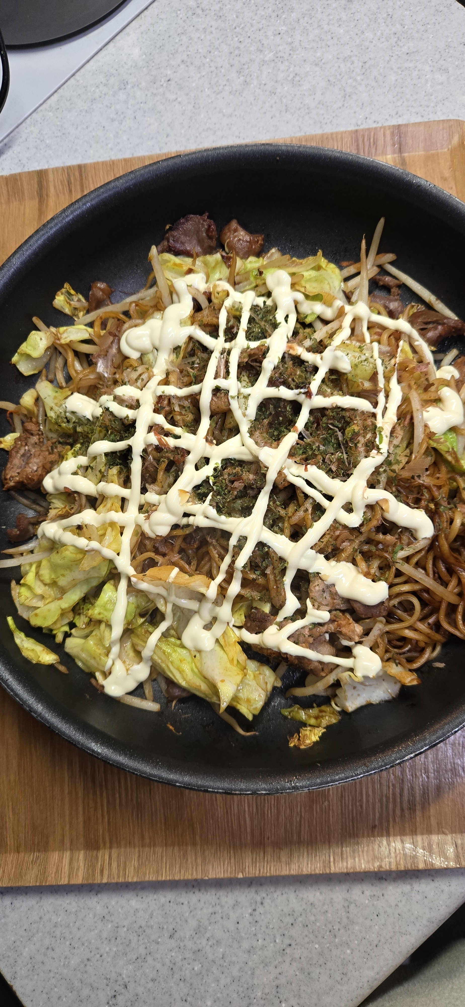 マヨ書きたっぷり焼きそば最高😆