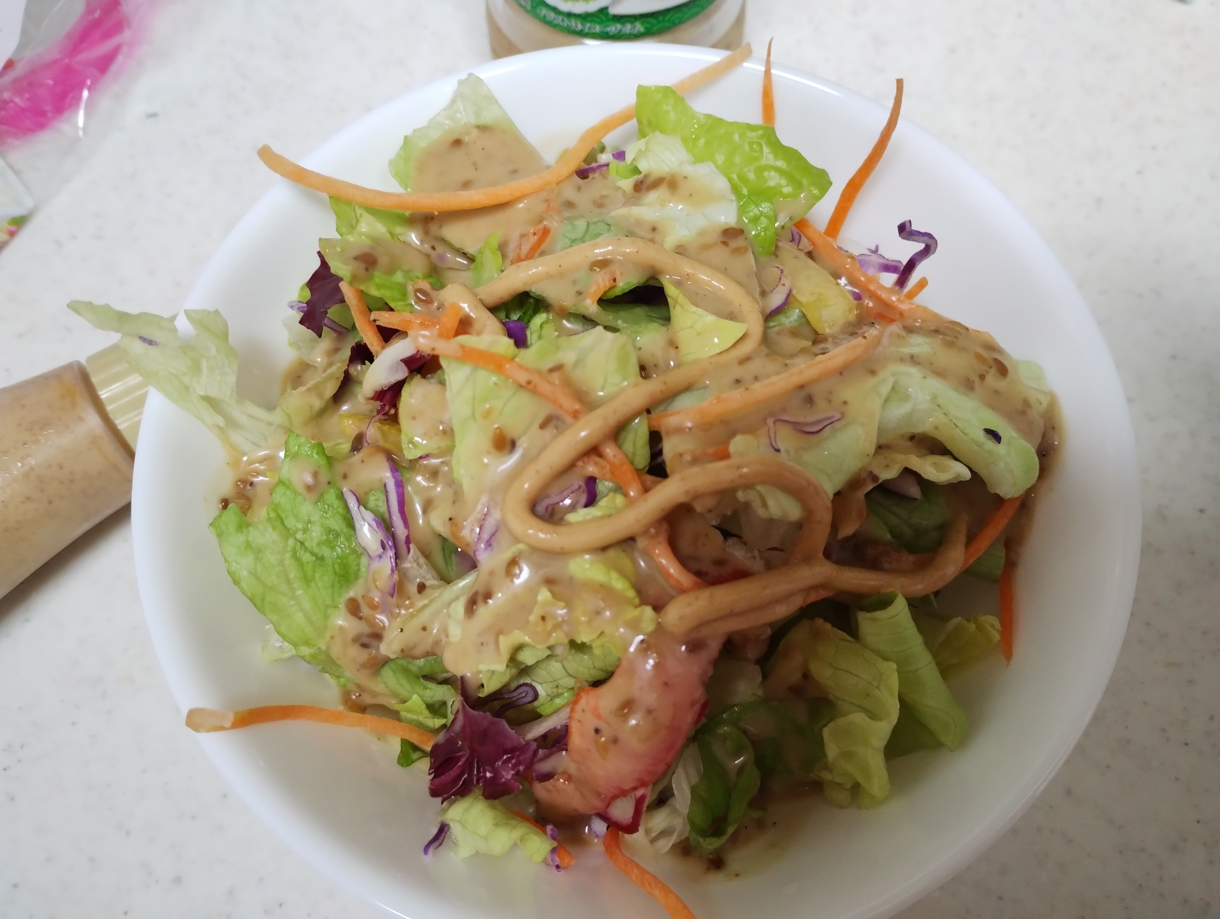 野菜サラダ(深ごま薬味ポン酢味+世界マヨ しびれ麻辣味)