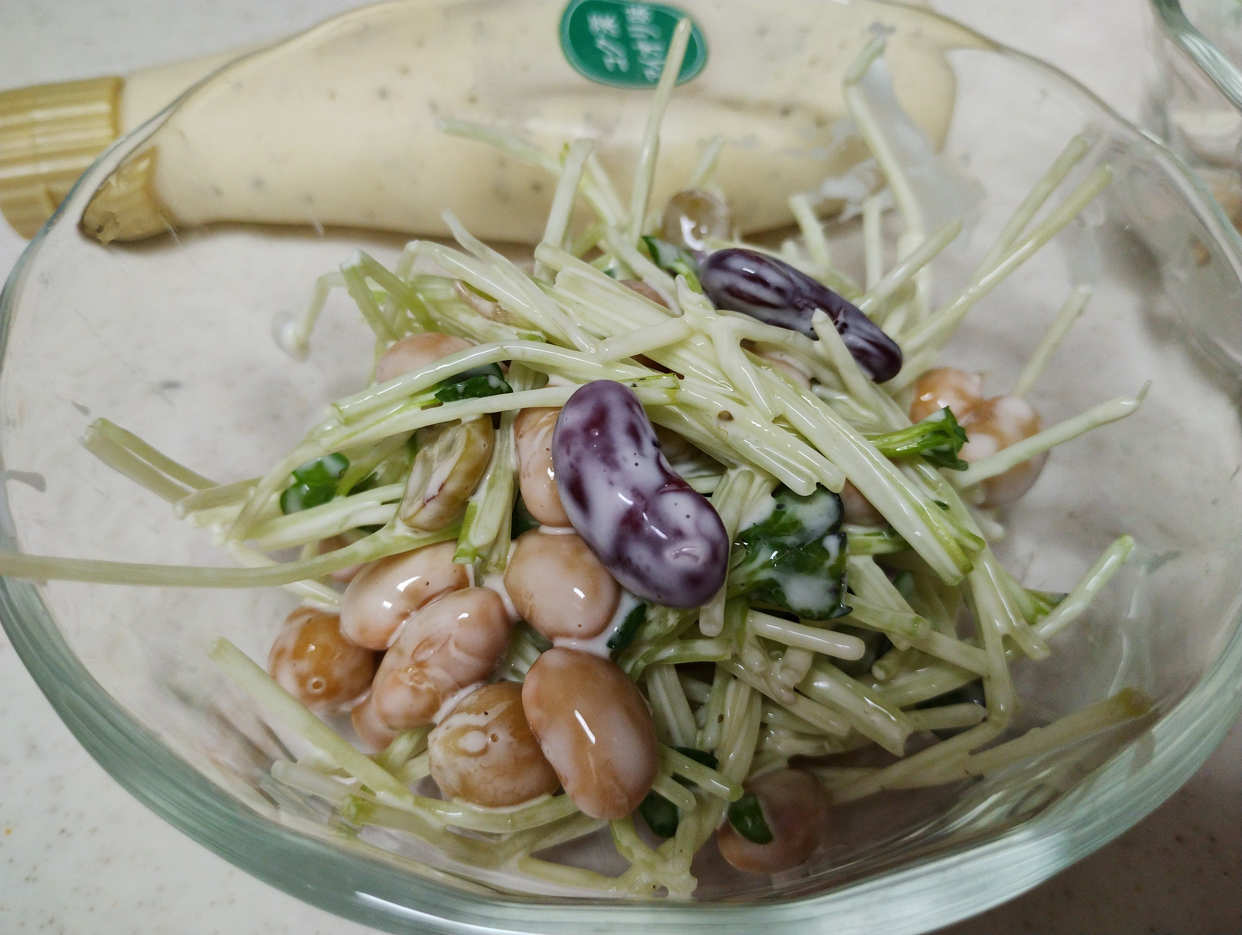 ビーンズとカイワレのマヨ和え(世界マヨ コク深アイオリ味)
