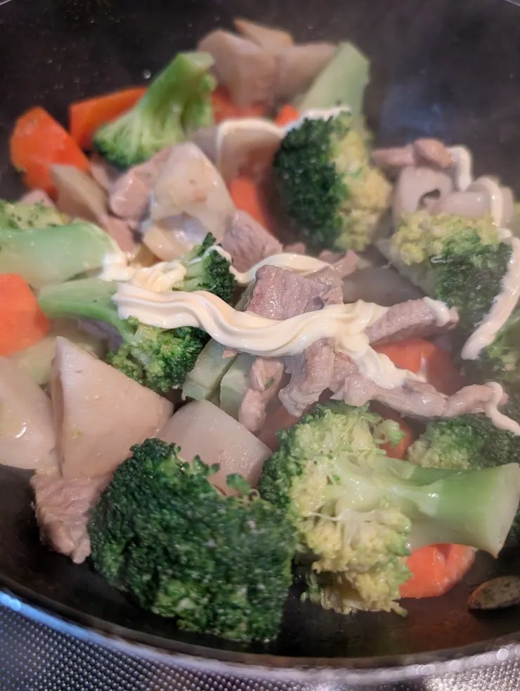 豚🐷、れんこん、人参🥕、ブロッコリー🥦のマヨ味噌󠄀炒め