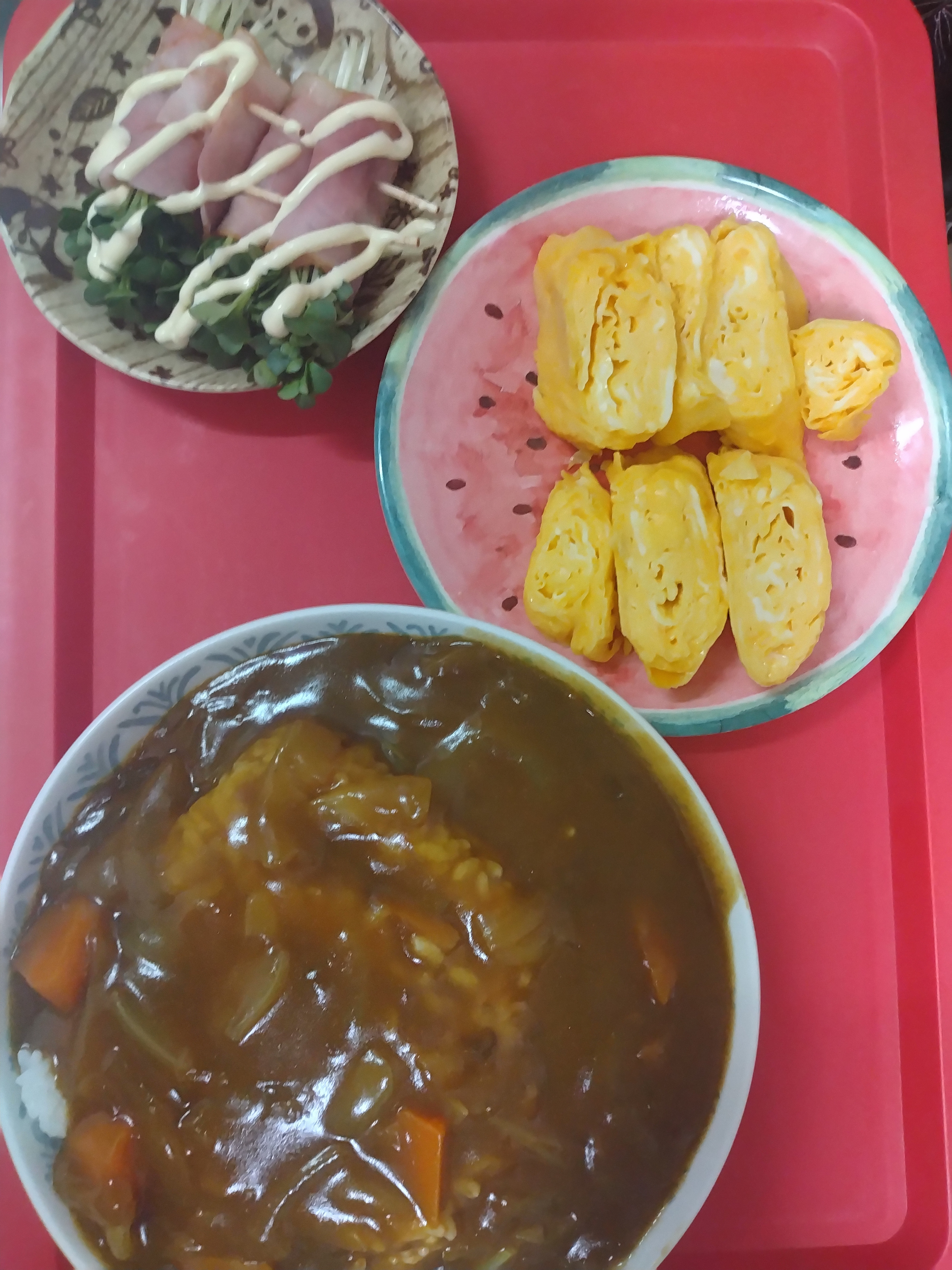 投稿を表示カレーもたっぷり、卵焼きもマヨネーズでふわふわでしょうね。