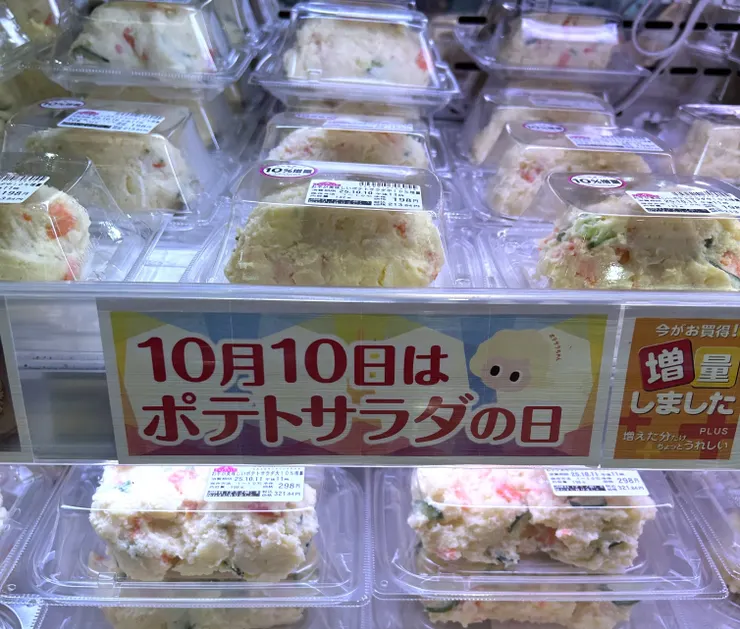 投稿を表示すごい、スーパーで、ポテサラちゃんに会えるのですね。ポテサラの日って、書いてある。