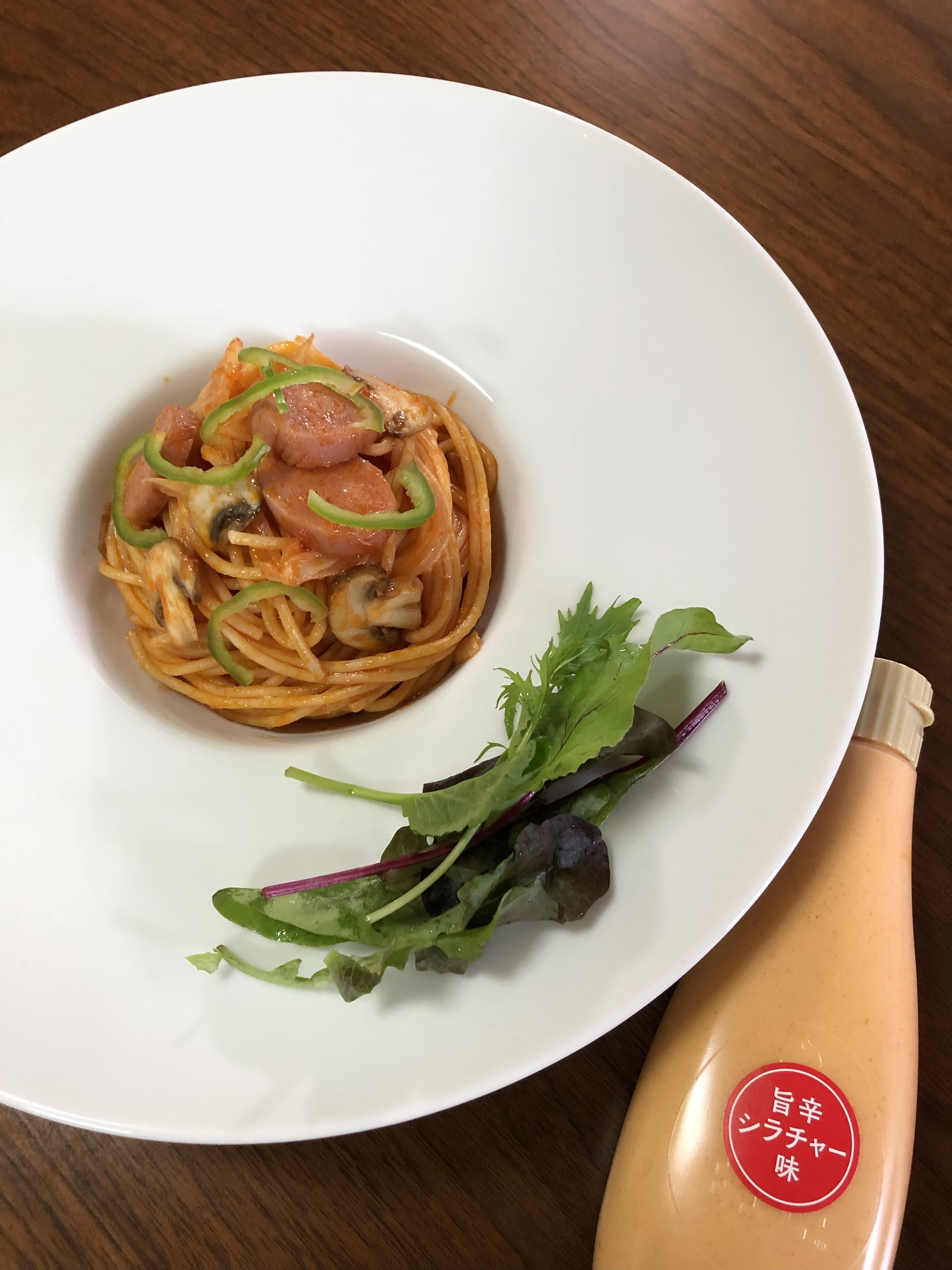 旨辛シラチャー味のナポリタンとっても美味しそう。