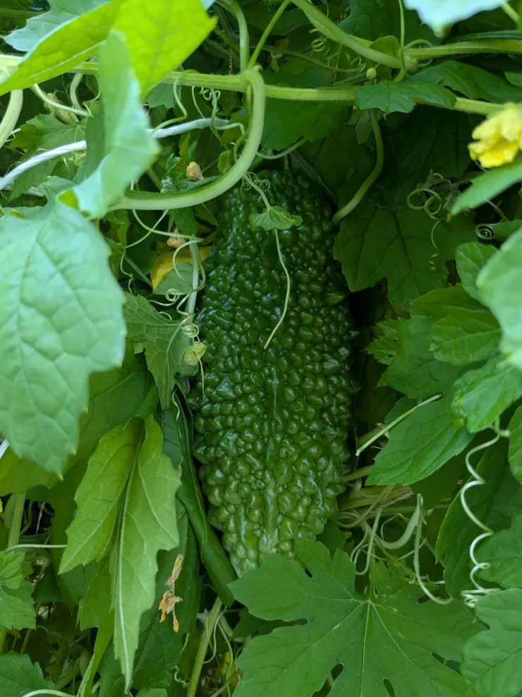 ゴーヤカーテンの中に隠れているのを見つけました🤣