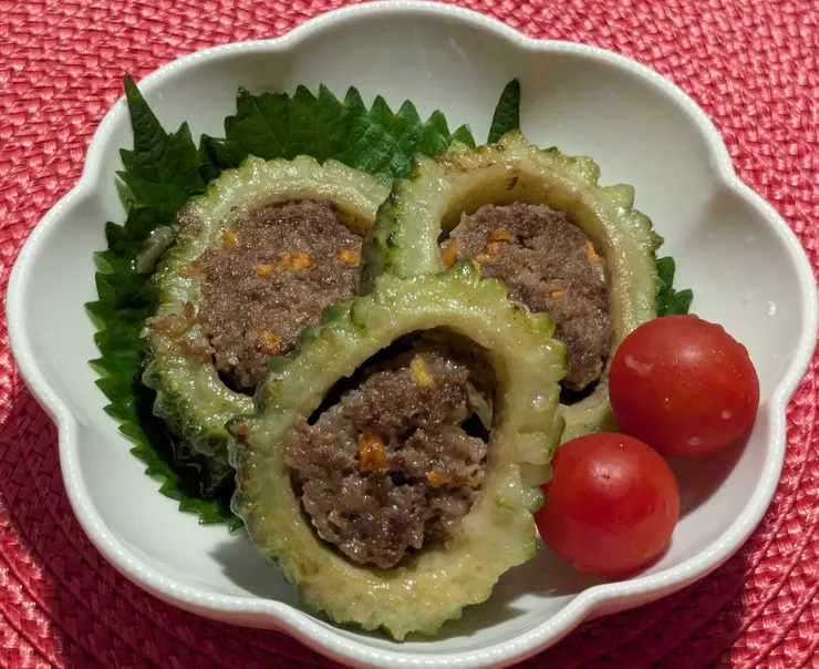 ゴーヤの肉詰めは黒酢あん仕立てなんですね。身体に良く、とても美味しそうです!
